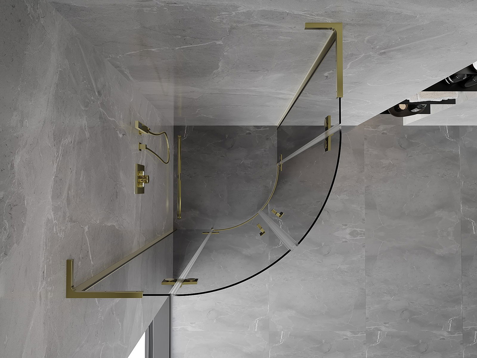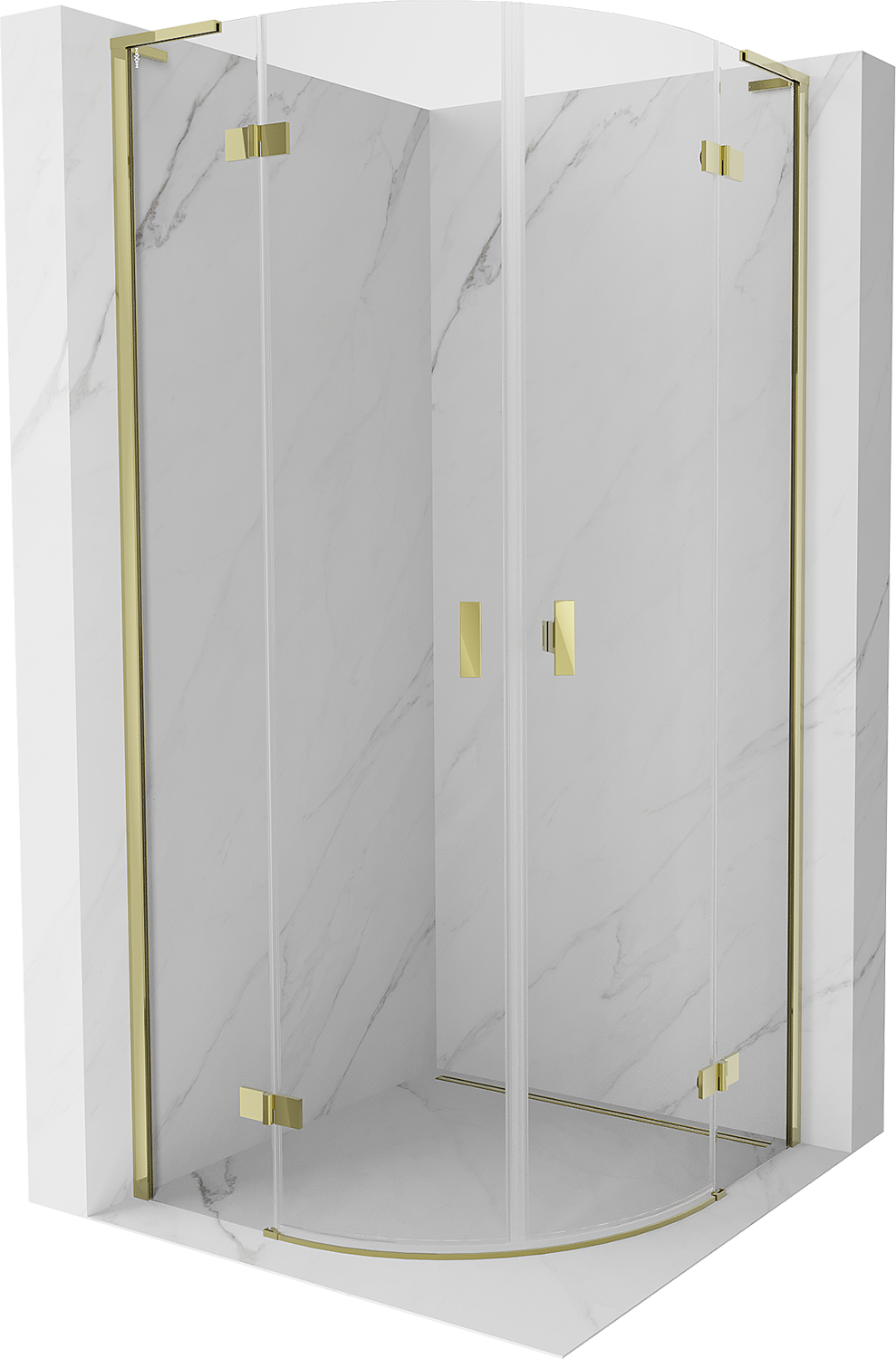 Mexen Mist L cabine de douche semi-circulaire pivotante 100 x 100 cm, transparent, dorée - 8A33L-100-100-50-00