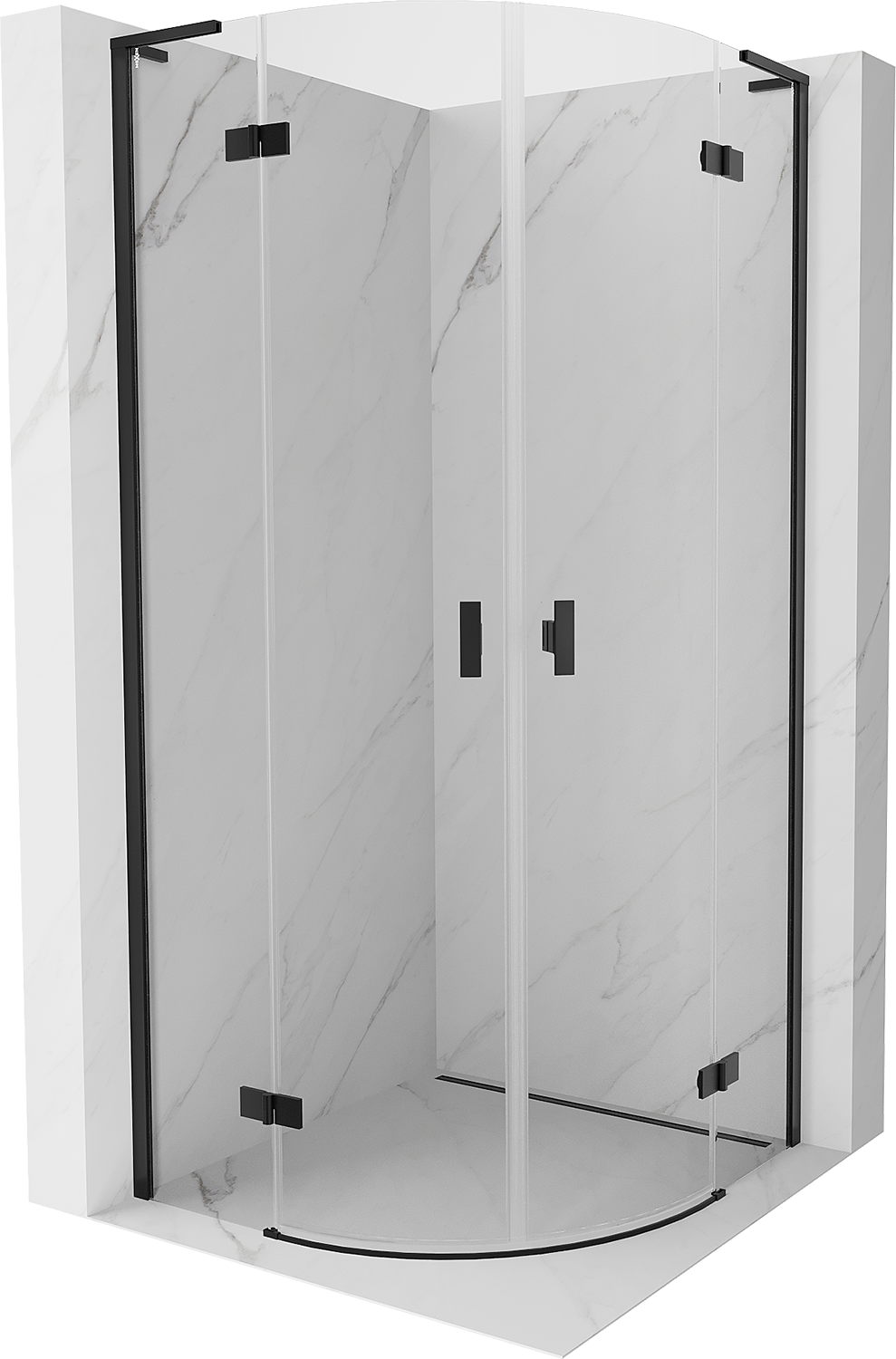Mexen Mist L cabine de douche semi-circulaire pivotante 90 x 90 cm, transparent, noir - 8A33L-090-090-70-00