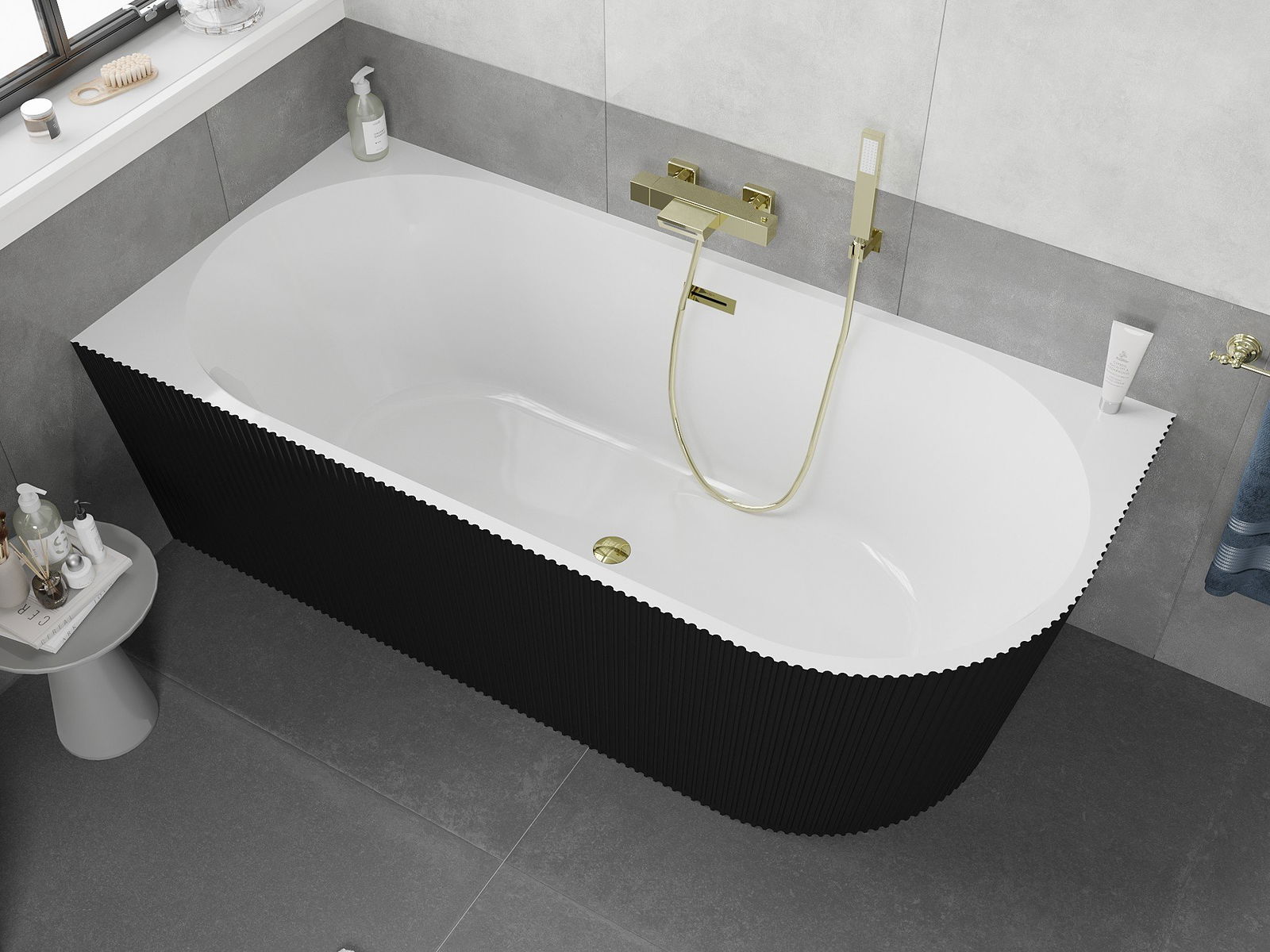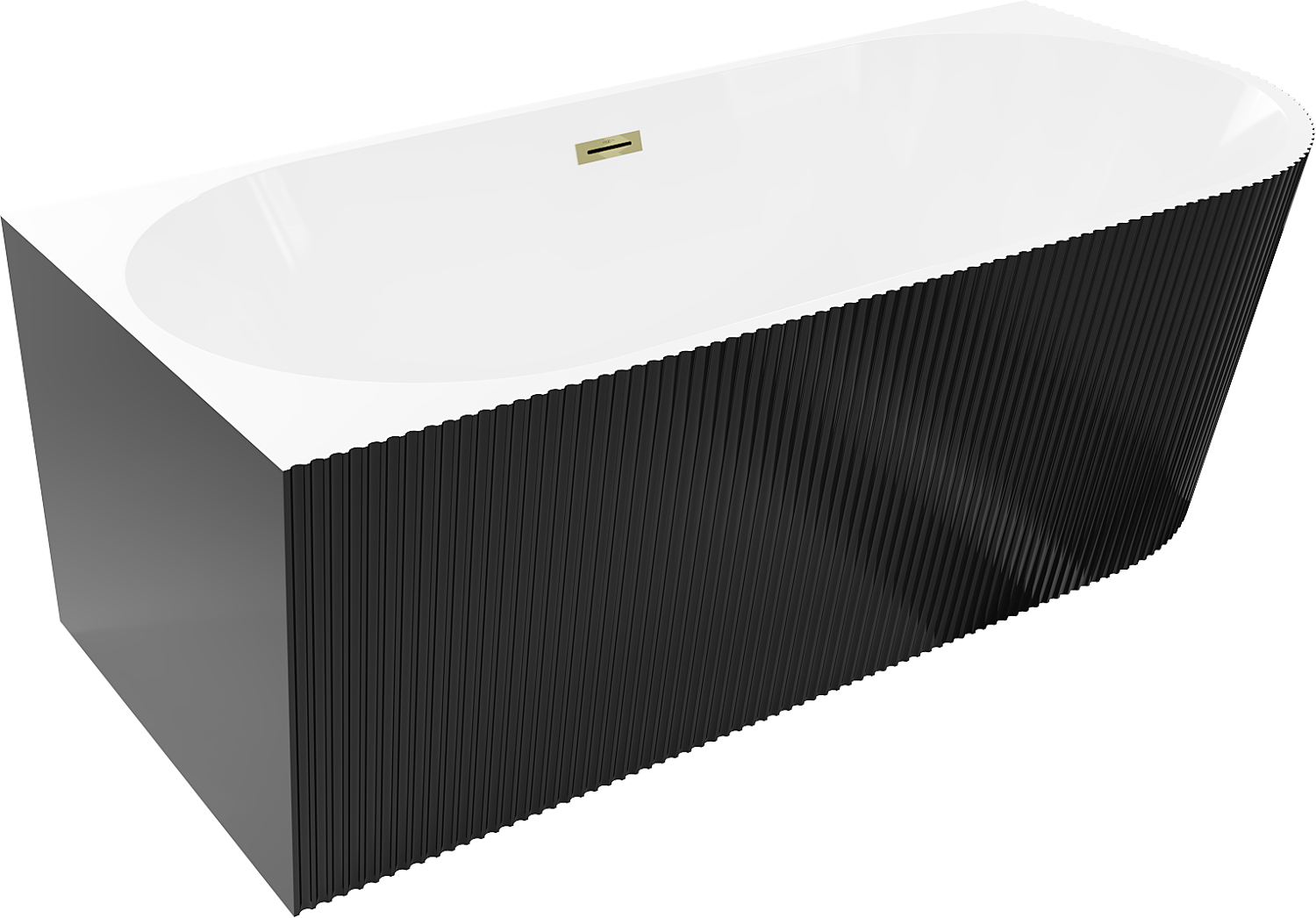 Mexen Silo baignoire autoportante d'angle gauche nervurée 170 x 80 cm, blanc/noir, trop-plein doré - 52891708075L-50