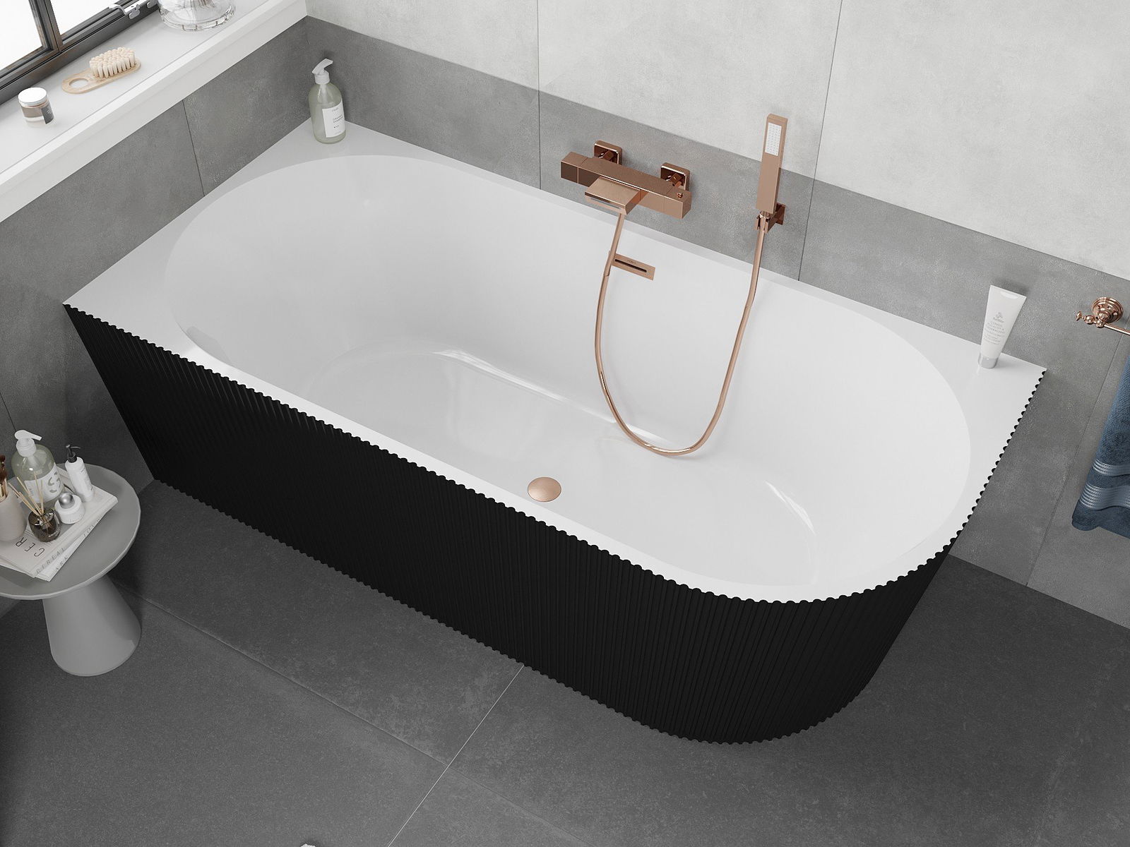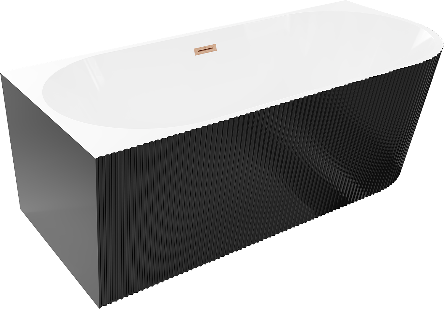 Mexen Silo baignoire autoportante d'angle gauche rainurée 170 x 80 cm, blanc/noir, trop-plein cuivre brossé - 52891708075L-65