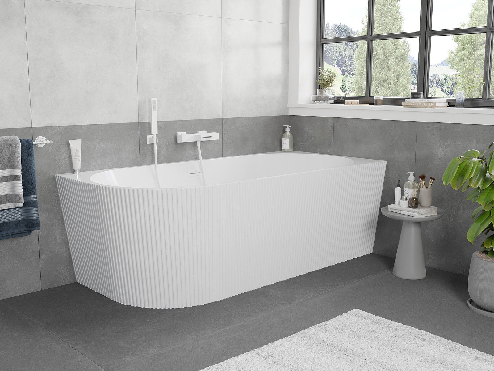 Mexen Silo baignoire autoportante d'angle droite rainurée 150 x 75 cm, blanche, trop-plein blanc - 52891507500P-20