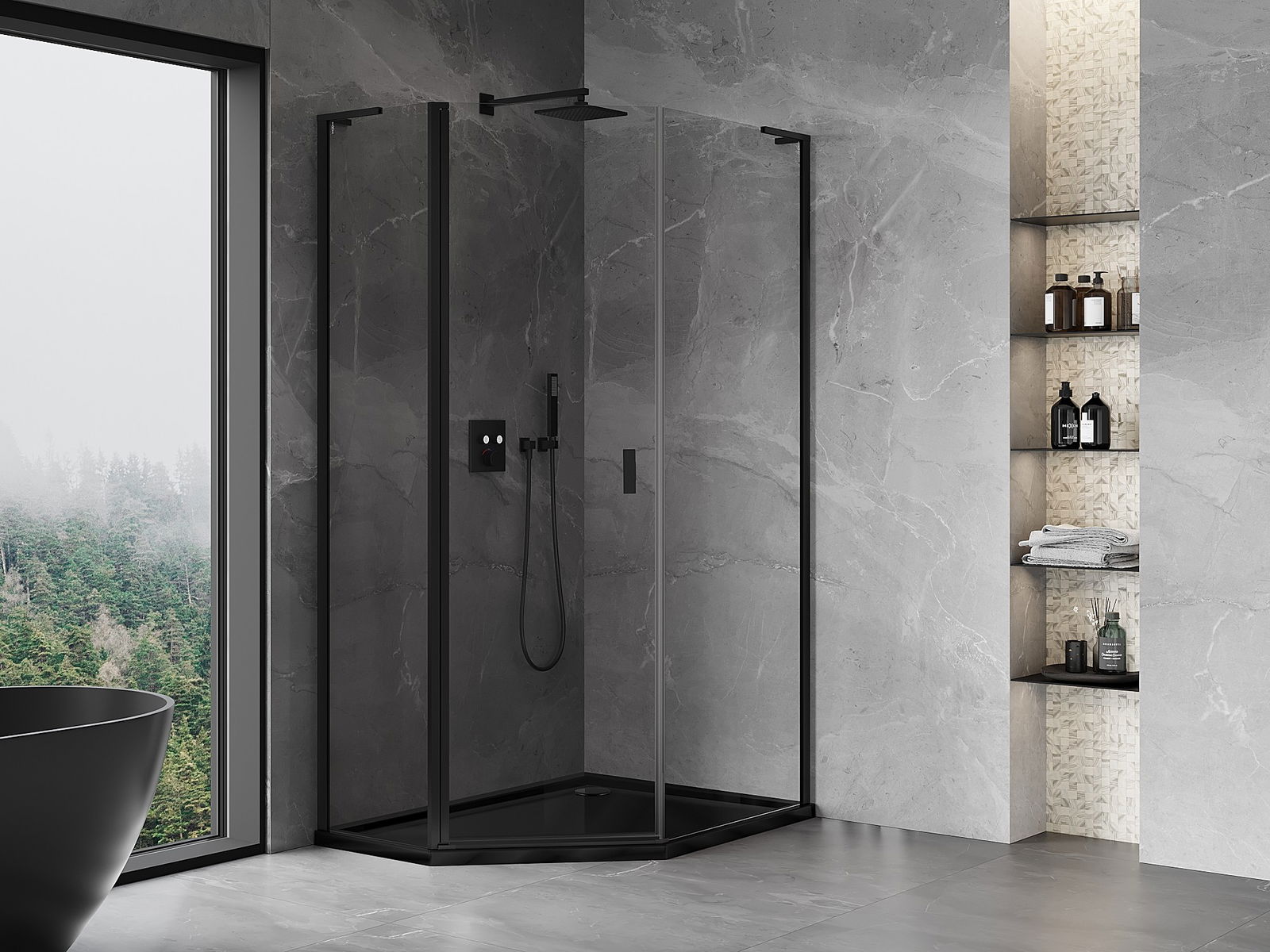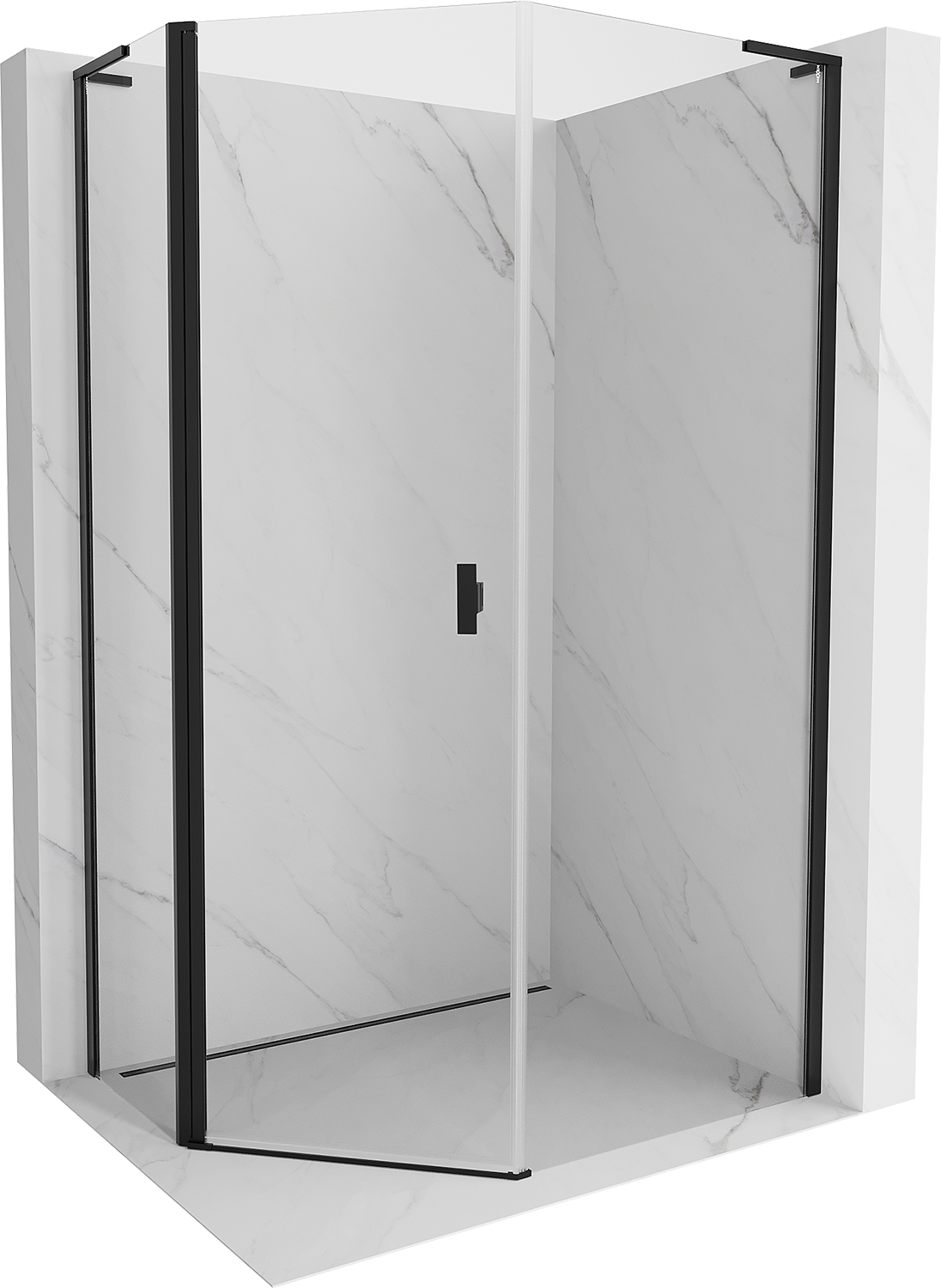 Mexen Mist L cabine de douche pentagonale asymétrique battante 80 x 90 cm, transparent, noir - 8A8L-080-090-70-00