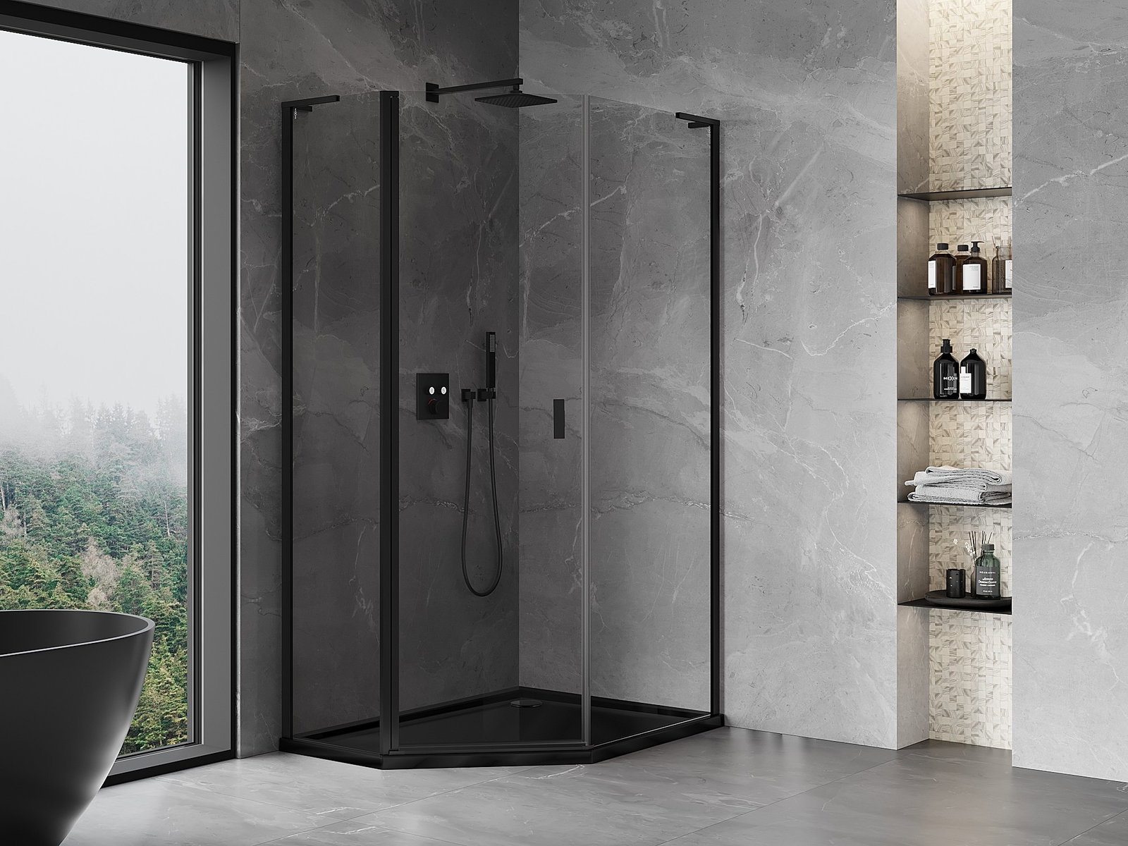 Mexen Mist L cabine de douche pentagonale asymétrique pivotante 90 x 100 cm, transparent, noir - 8A8L-090-100-70-00