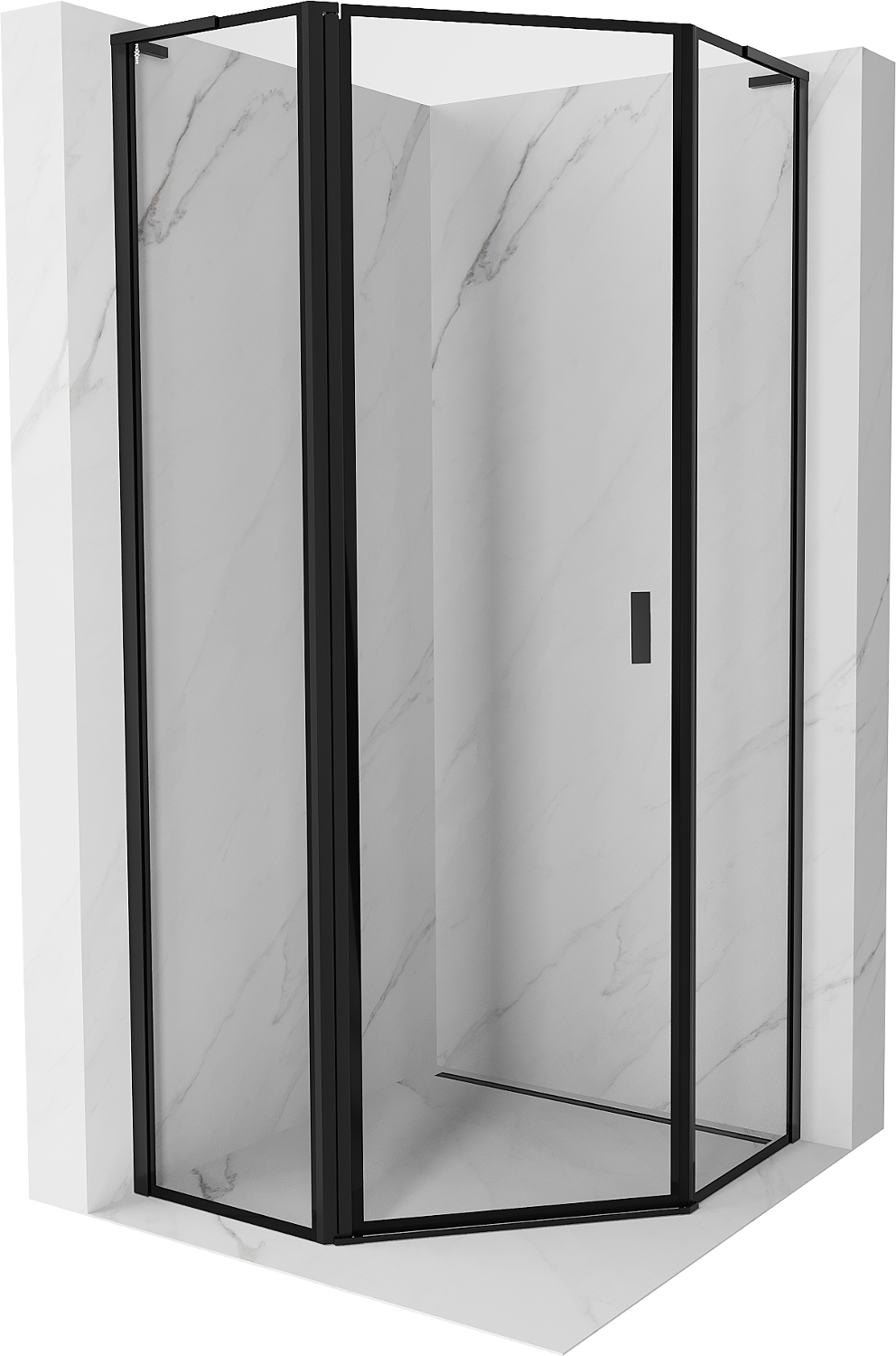 Mexen Mist L cabine de douche pentagonale pivotante gauche 80 x 80 cm, cadre noir, noir - 8A8L-080-080-70-70-L
