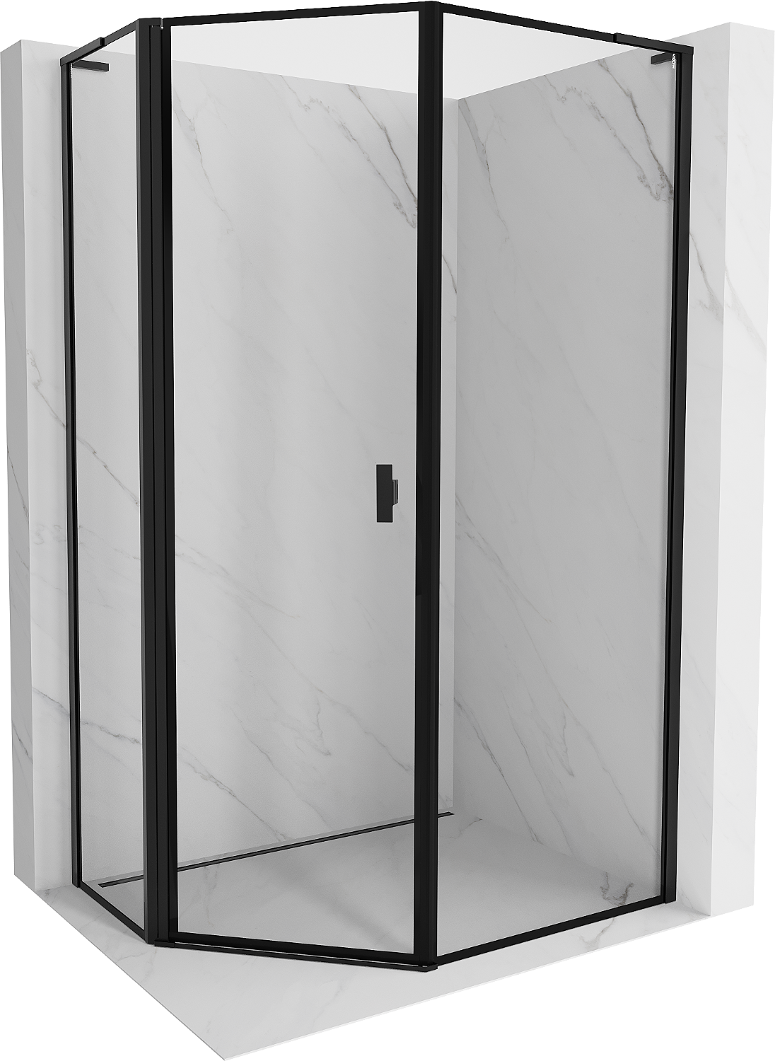 Mexen Mist L cabine de douche pentagonale asymétrique pivotante gauche 80 x 90 cm, cadre noir, noir - 8A8L-080-090-70-70-L