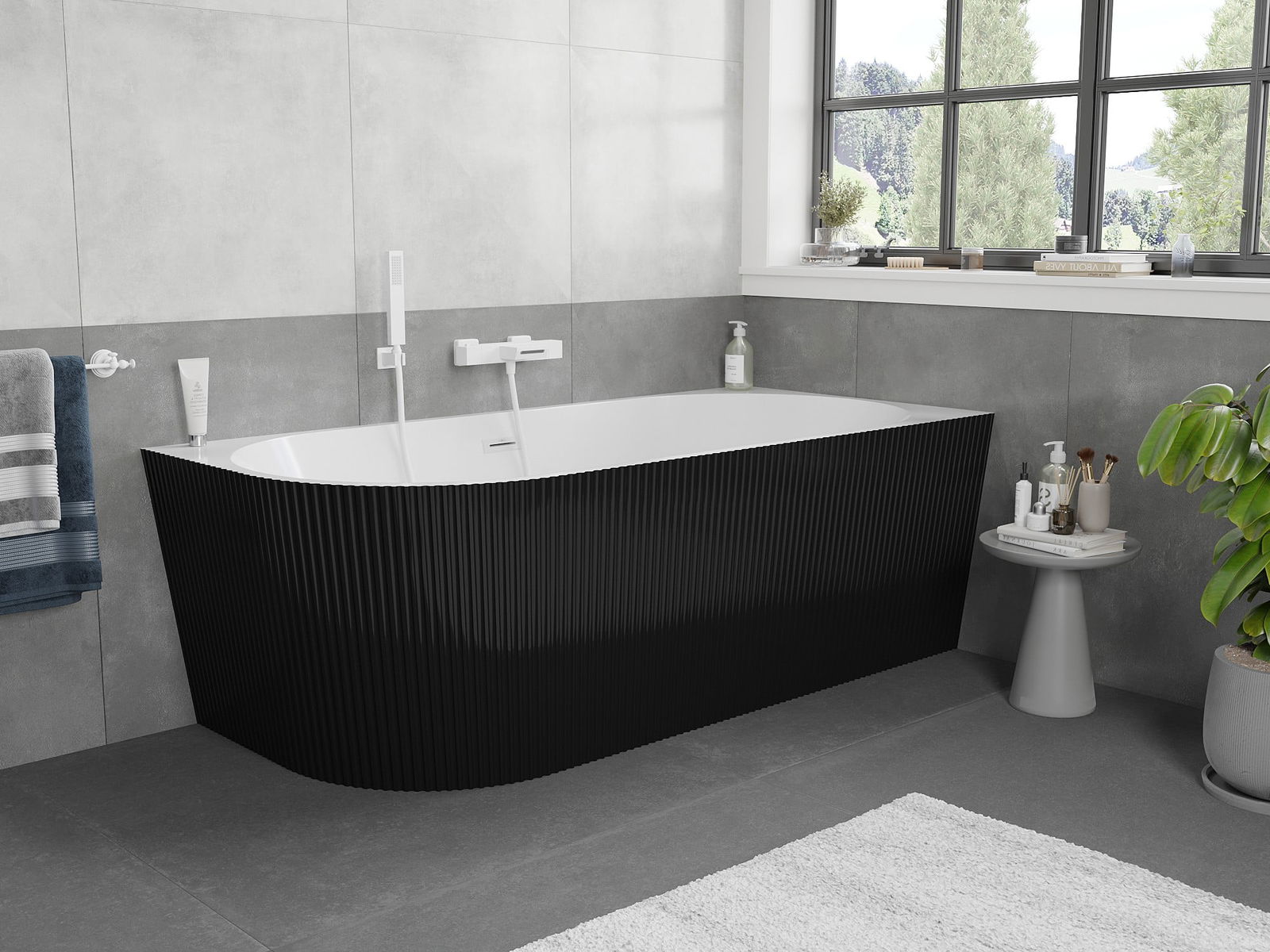 Mexen Silo baignoire îlot d'angle droite rainurée 150 x 75 cm, blanc/noir, trop-plein blanc - 52891507575P-20