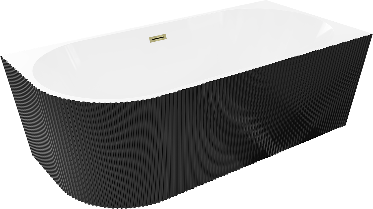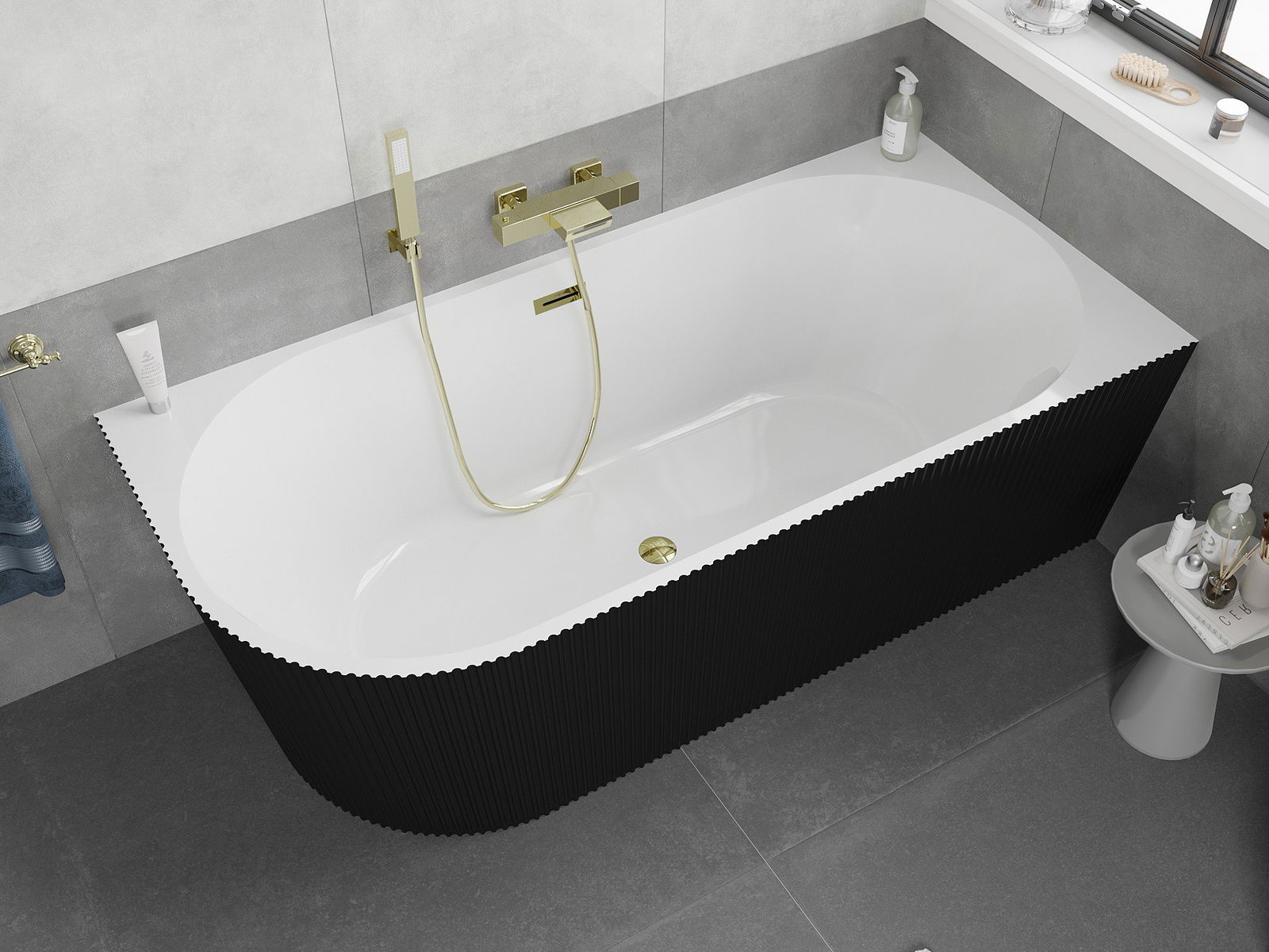 Mexen Silo baignoire autoportante d'angle droite rainurée 150 x 75 cm, blanche/noire, trop-plein doré - 52891507575P-50