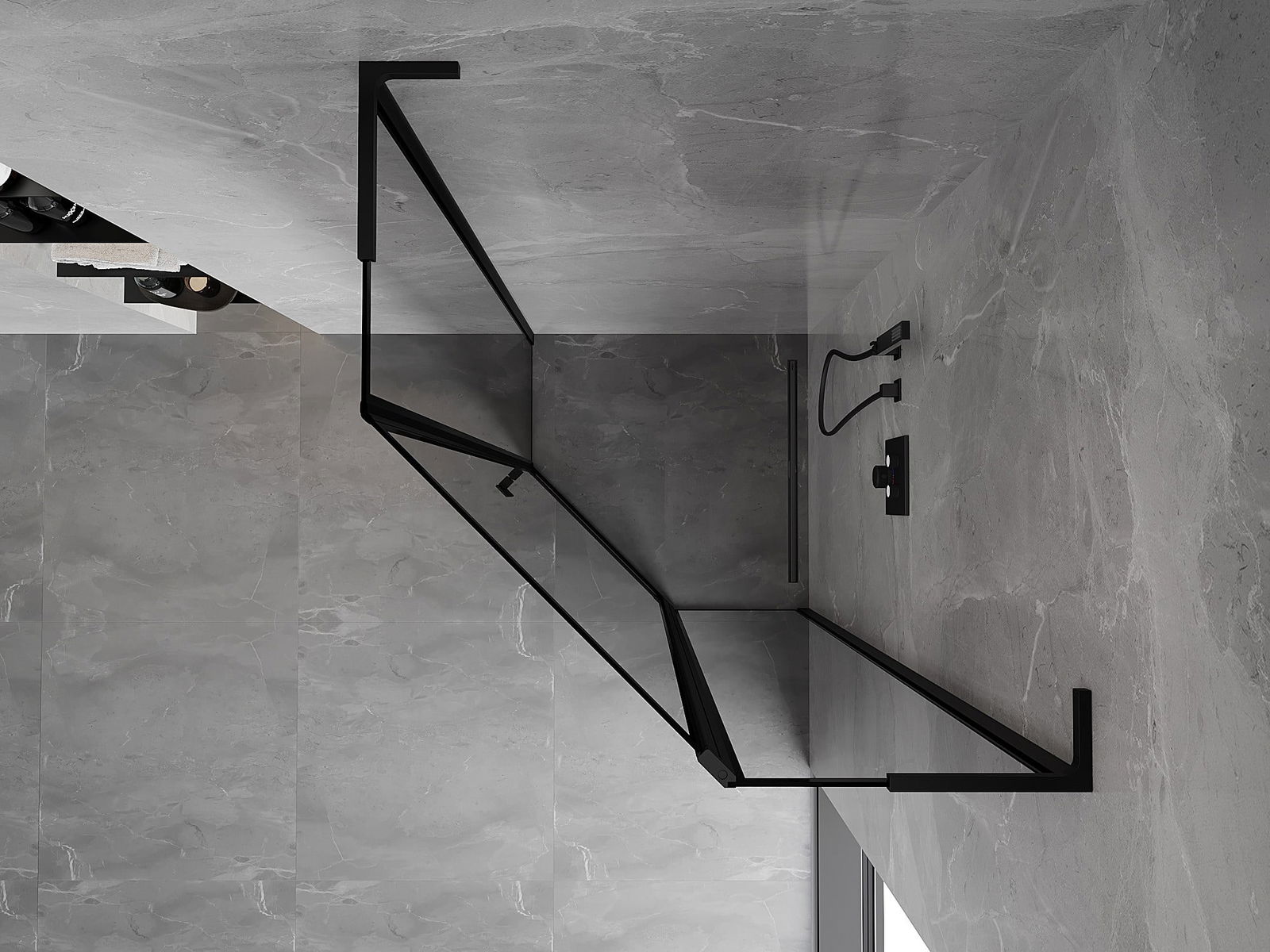 Mexen Mist L cabine de douche pentagonale porte battante droite 100 x 100 cm, cadre noir, noir - 8A8L-100-100-70-70-P