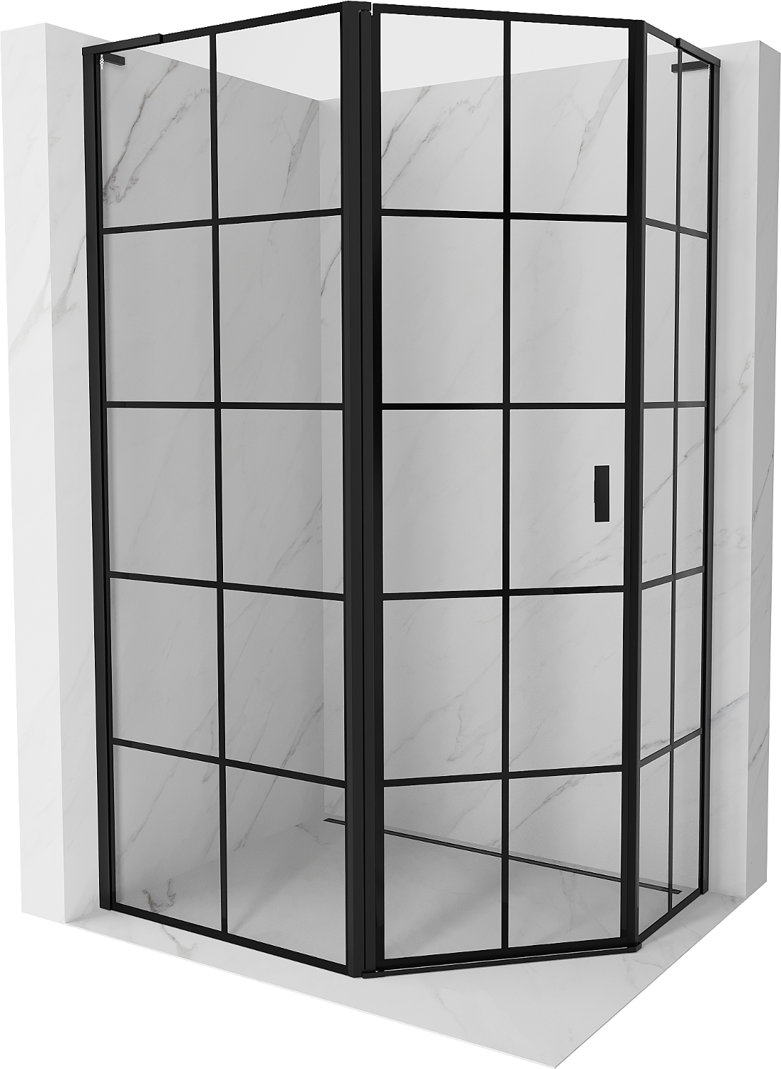 Mexen Mist L cabine de douche pentagonale asymétrique pivotante gauche 100 x 80 cm, grille noire, noir - 8A8L-100-080-70-77-L