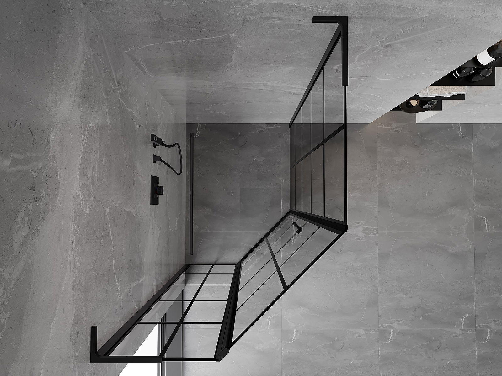 Mexen Mist L cabine de douche pentagonale asymétrique pivotante gauche 90 x 100 cm, grille noire, noire - 8A8L-090-100-70-77-L