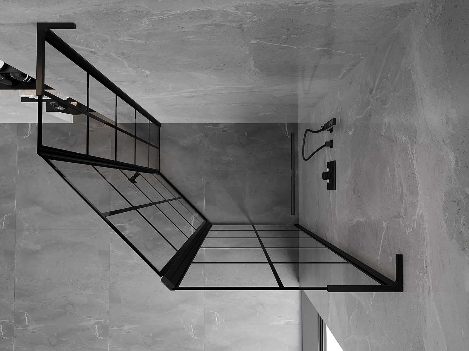 Mexen Mist L cabine de douche pentagonale asymétrique à charnière droite 90 x 80 cm, grille noire, noir - 8A8L-090-080-70-77-P