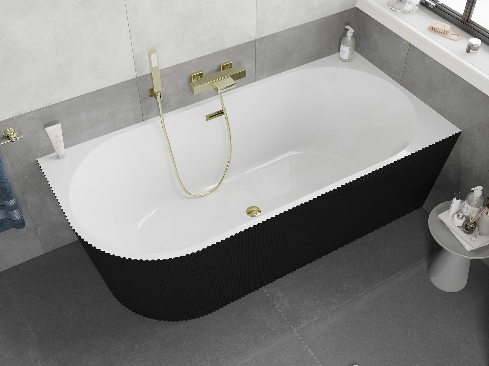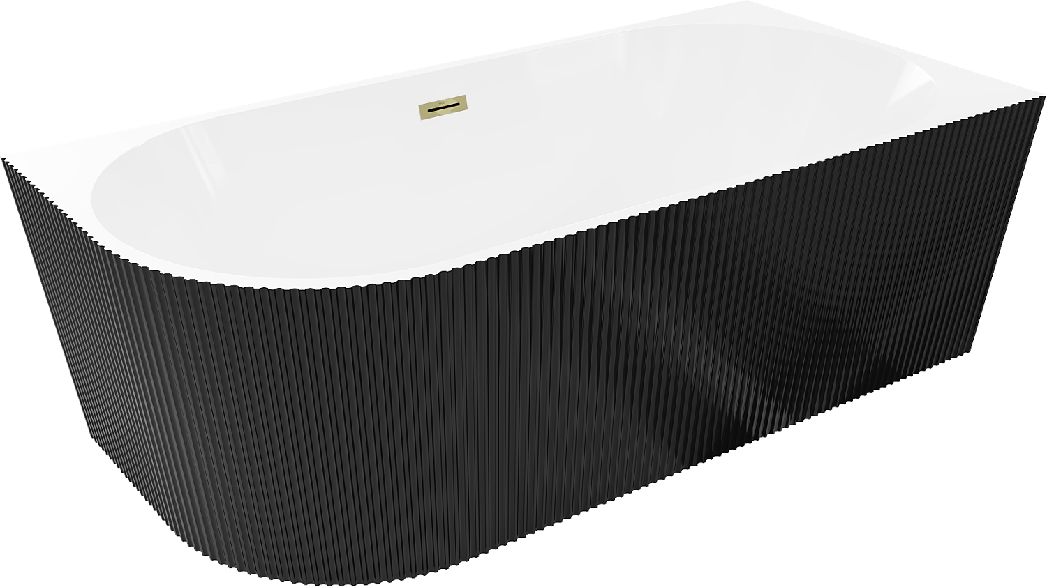 Mexen Silo baignoire îlot d'angle droite nervurée 170 x 80 cm, blanche/noire, trop-plein doré - 52891708075P-50