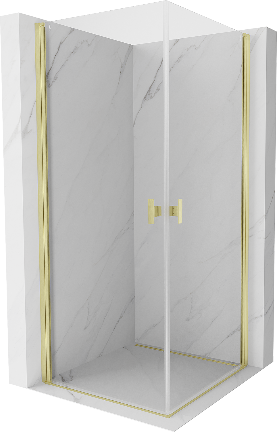 Mexen Mist-B Duo cabine de douche pivotante 75 x 75 cm, transparent, or brossé - 8A2-075-075-55-00