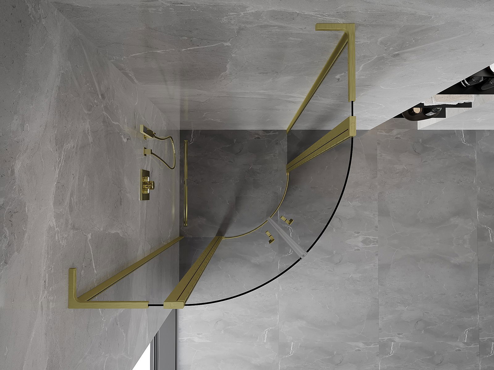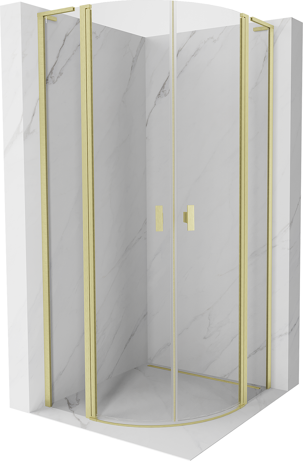 Mexen Mist L cabine de douche semi-circulaire pivotante 90 x 90 cm, transparent, or brossé - 8A32L-090-090-55-00