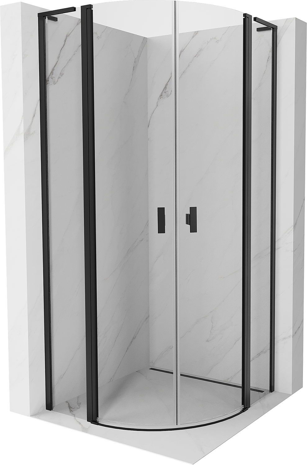 Mexen Mist L cabine de douche semi-circulaire pivotante 100 x 100 cm, transparent, noir - 8A32L-100-100-70-00