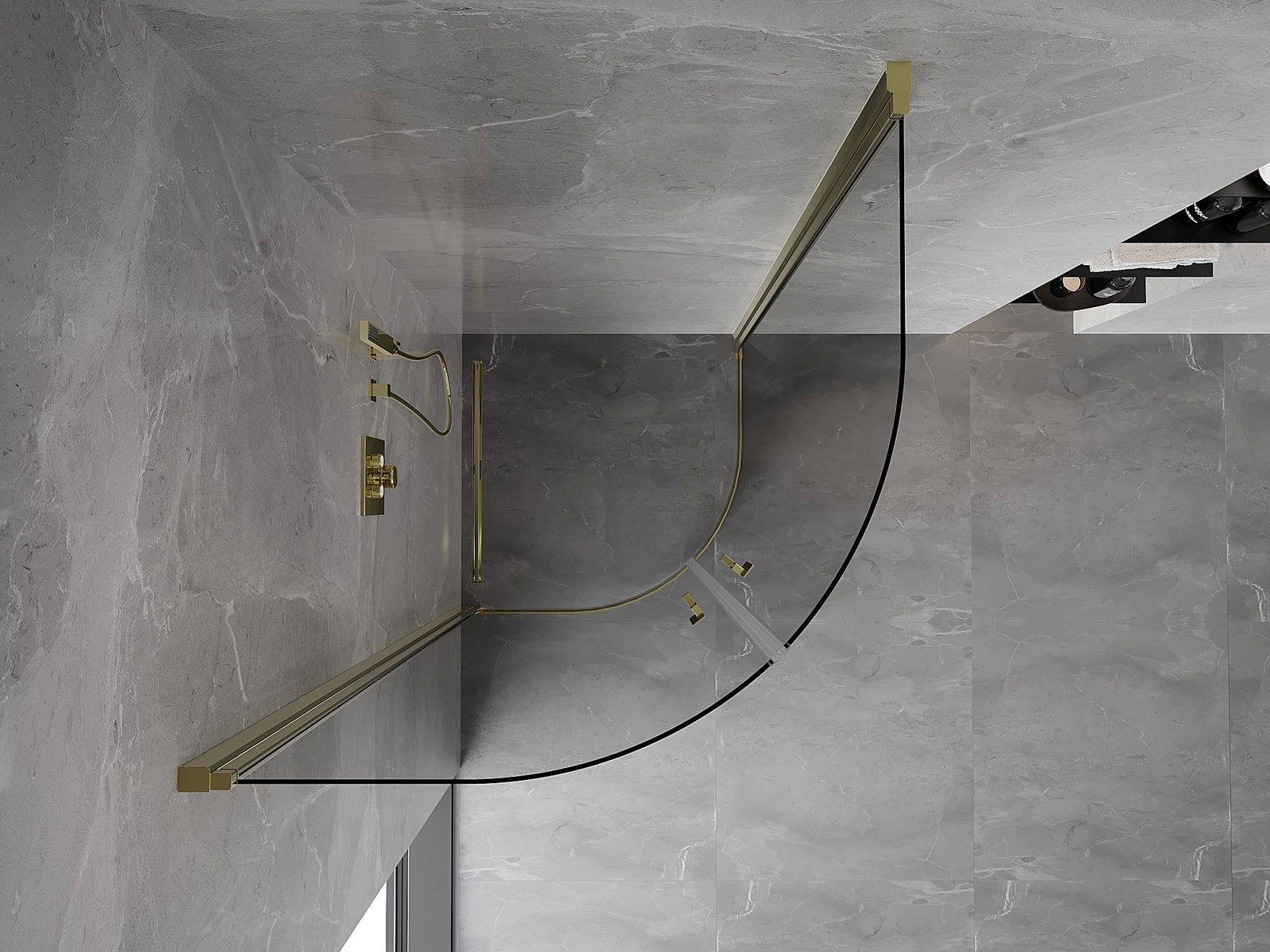 Mexen Mist cabine de douche semi-circulaire pivotante 70 x 70 cm, transparent, or - 8A31-070-070-50-00