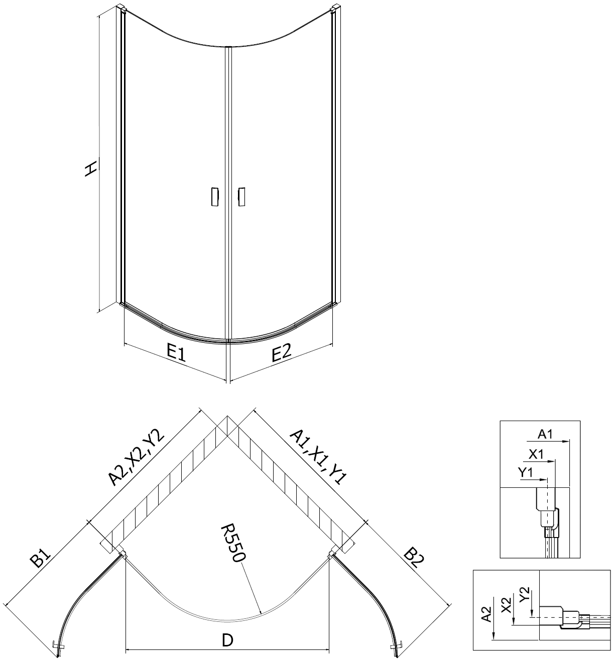 Les portes battantes permettent une liberté maximale lors de l'utilisation. Elles possèdent des charnières solides fabriquées à partir d'un matériau durable, qui ne posent pas de difficultés pour le nettoyage et permettent un accès facile à l'intérieur de la cabine.