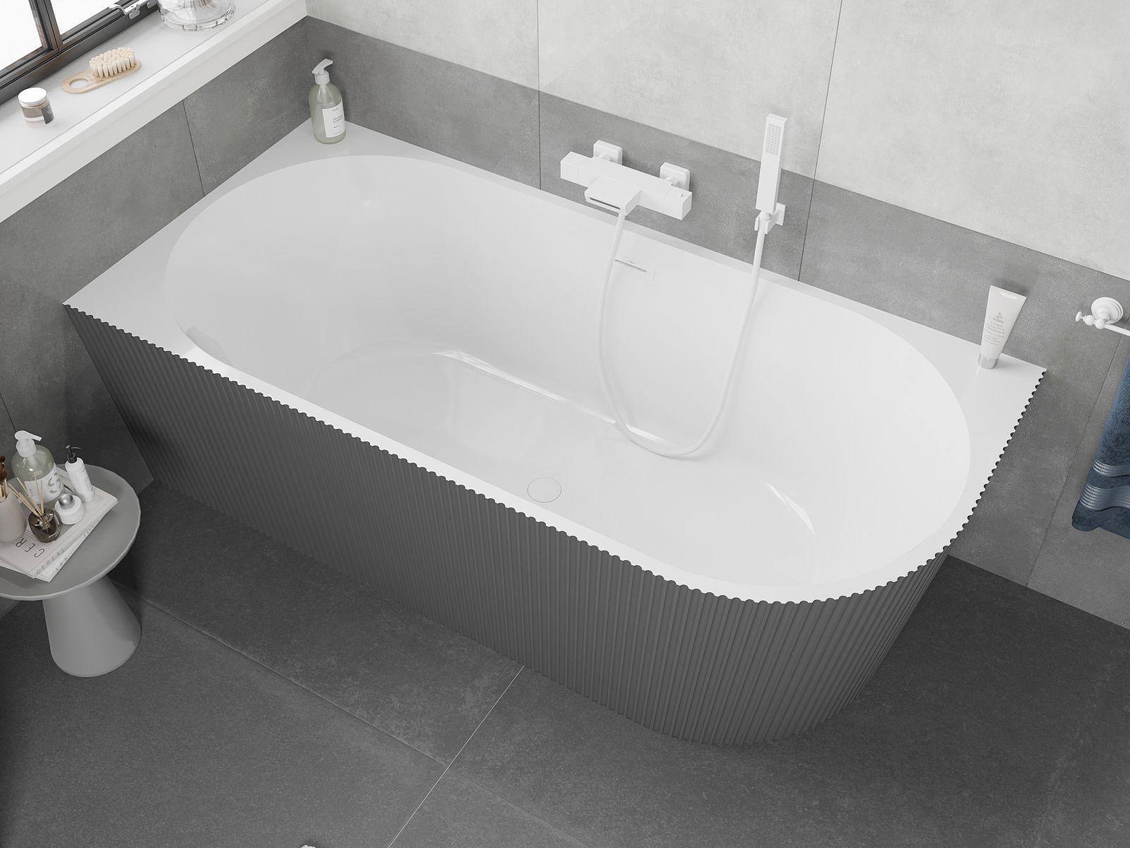 Mexen Silo baignoire autoportante d'angle gauche nervurée 170 x 80 cm, blanche/grise, trop-plein blanc - 52891708062L-20