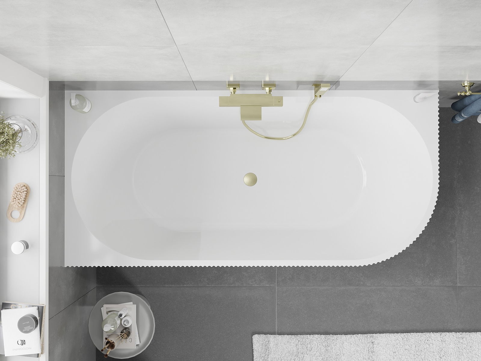 Mexen Silo baignoire autoportante d'angle gauche rainurée 170 x 80 cm, blanc/gris, trop-plein doré brossé - 52891708062L-55
