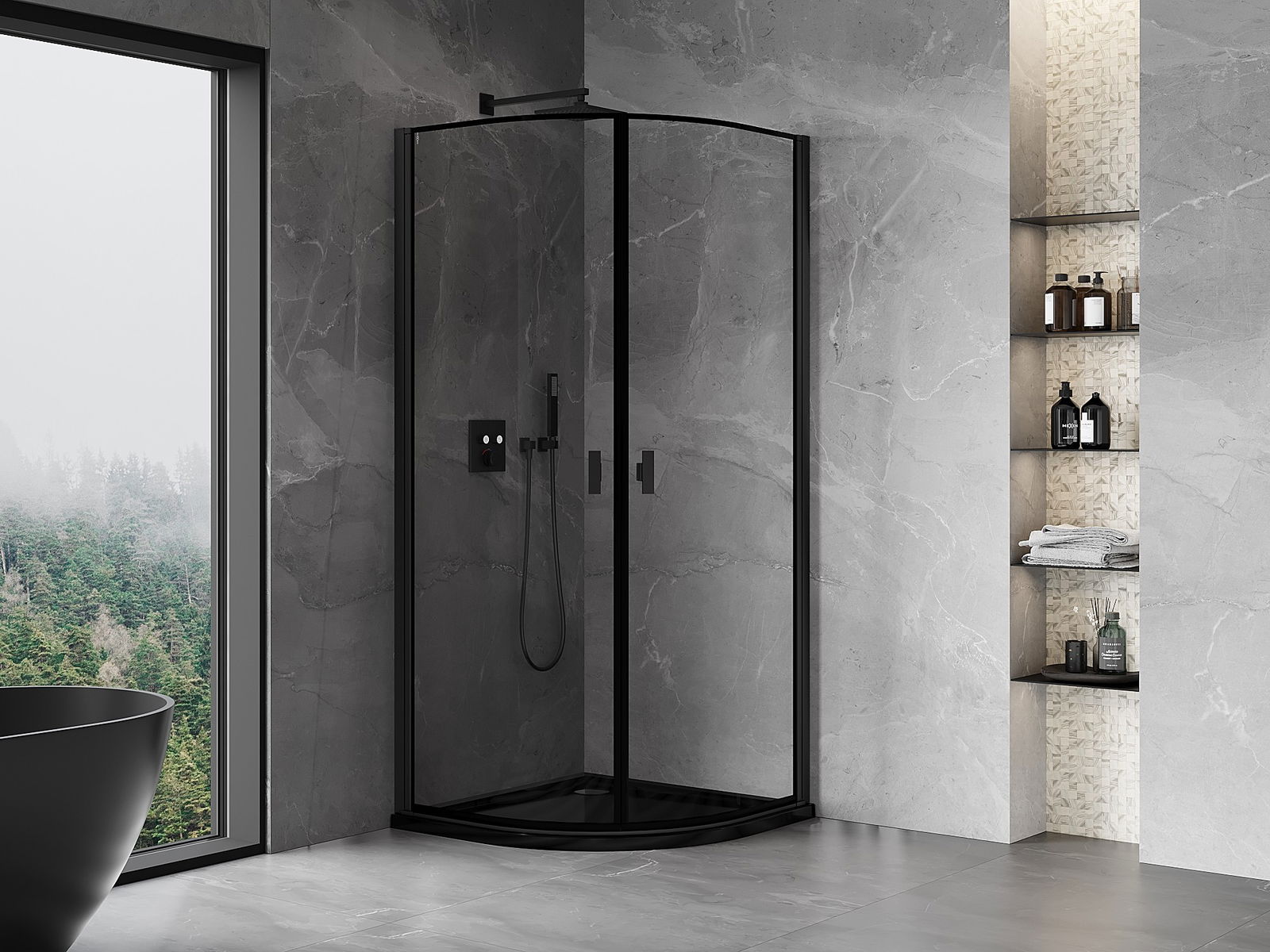 Mexen Mist cabine de douche semi-circulaire battante 70 x 70 cm, cadre noir, noir - 8A31-070-070-70-70