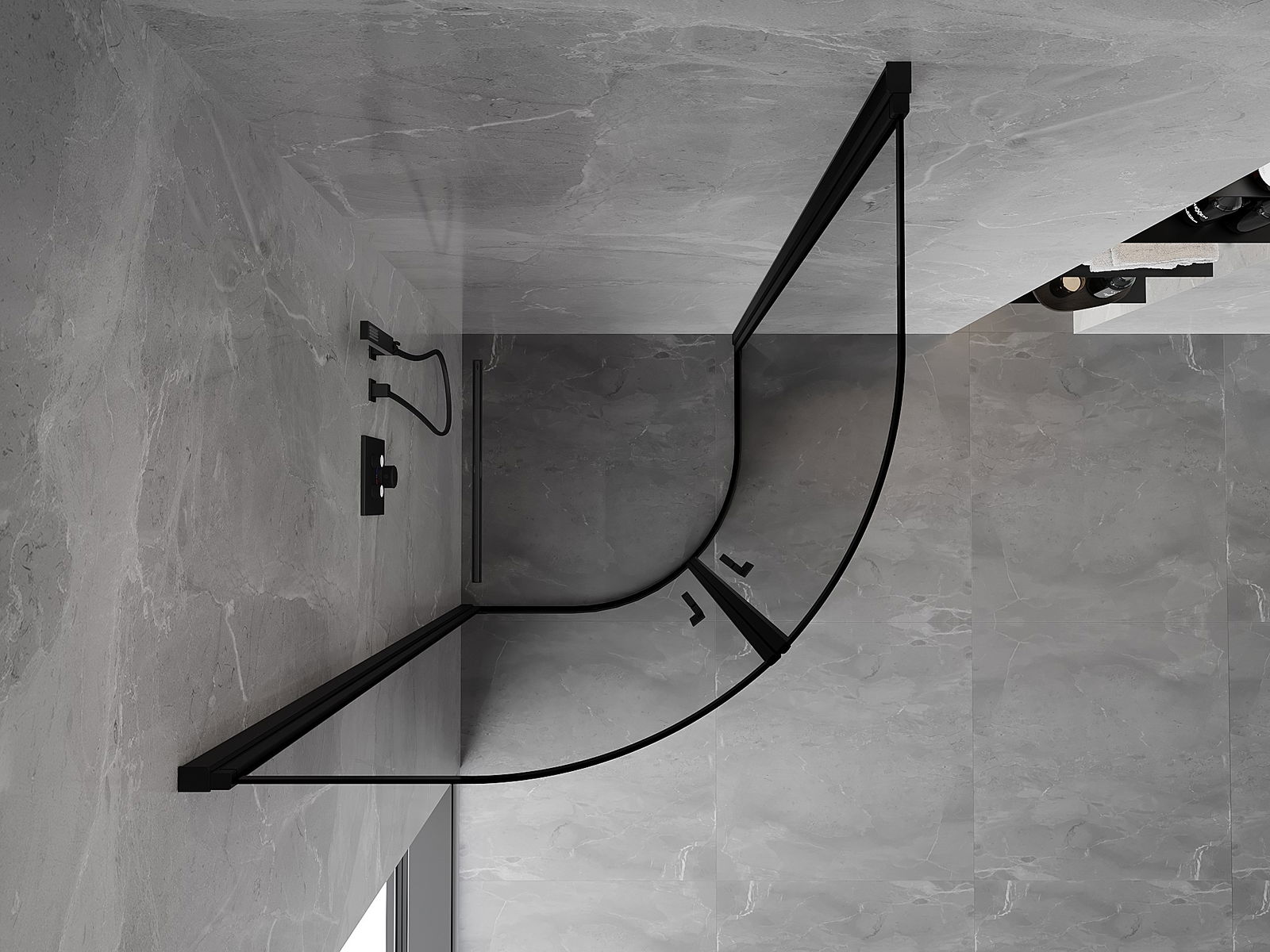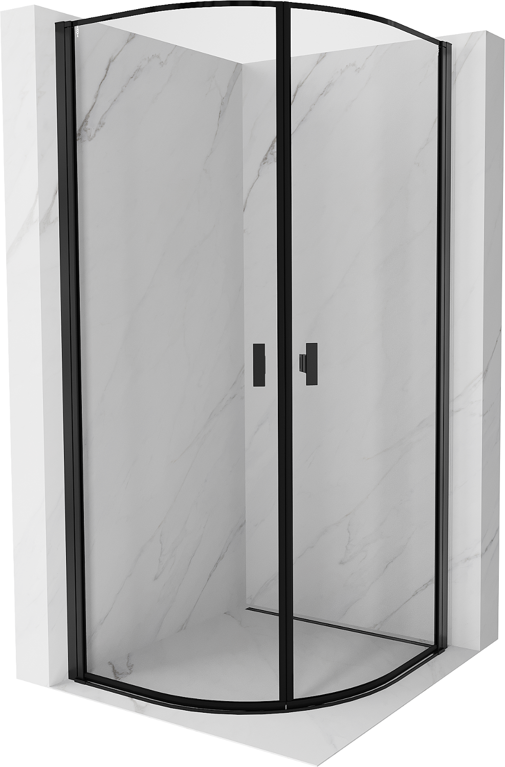 Mexen Mist cabine de douche semi-circulaire pivotante 90 x 90 cm, cadre noir, noir - 8A31-090-090-70-70