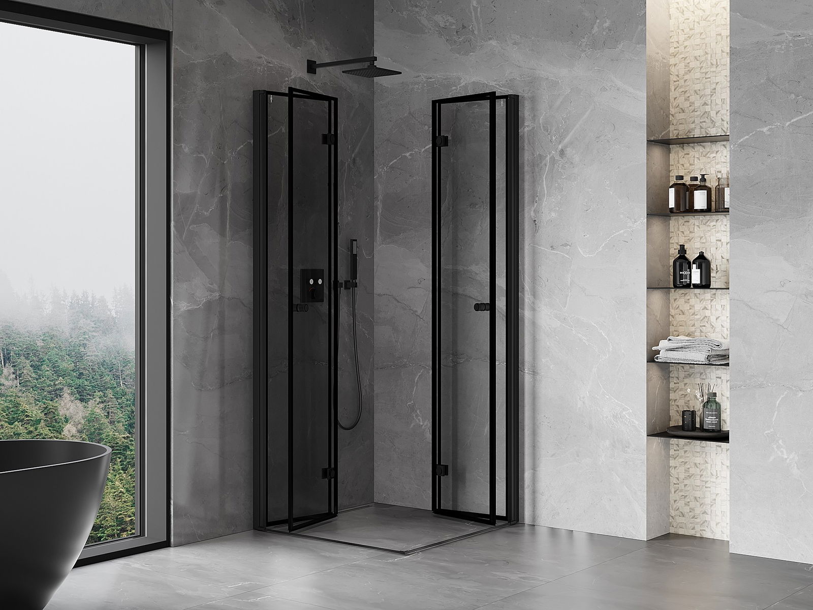 Mexen Mist-F Duo cabine de douche pliante 100 x 100 cm, cadre noir, noir - 8A6-100L-100P-70-70