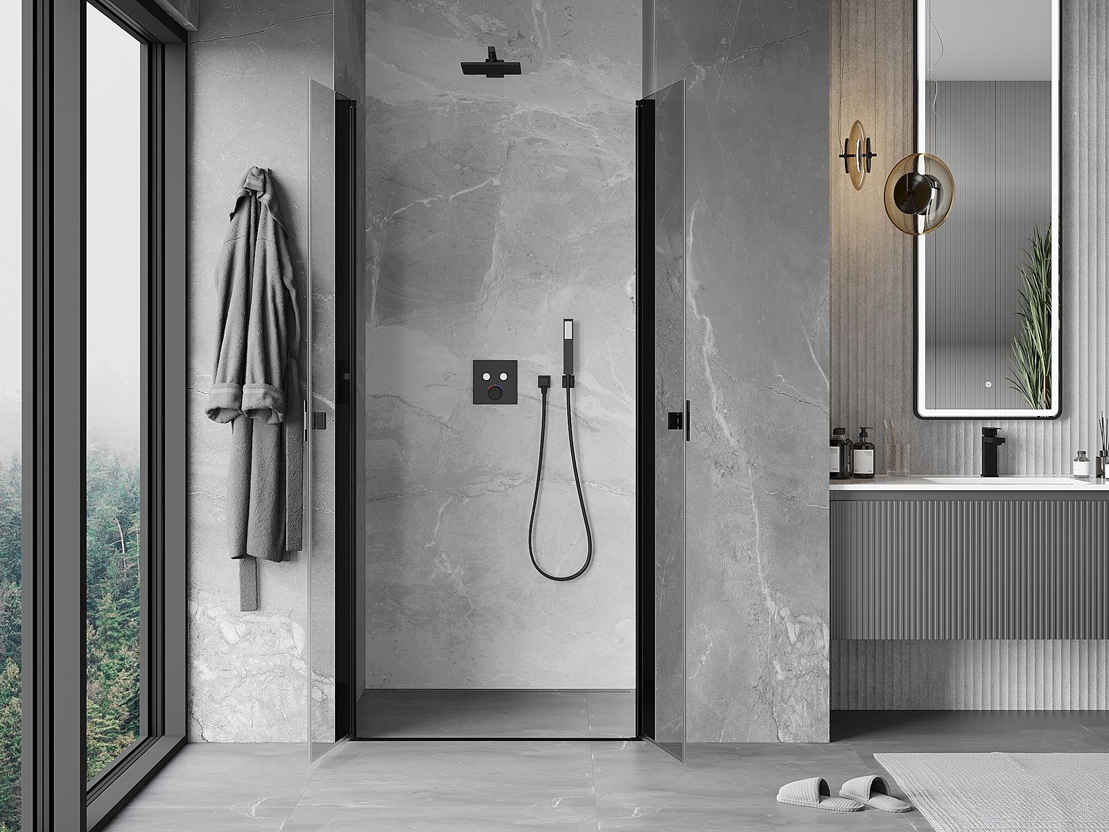 Les portes battantes permettent une liberté maximale lors de l'utilisation. Elles possèdent des charnières solides fabriquées à partir d'un matériau durable, qui ne posent pas de difficultés pour le nettoyage et permettent un accès facile à l'intérieur de la cabine.