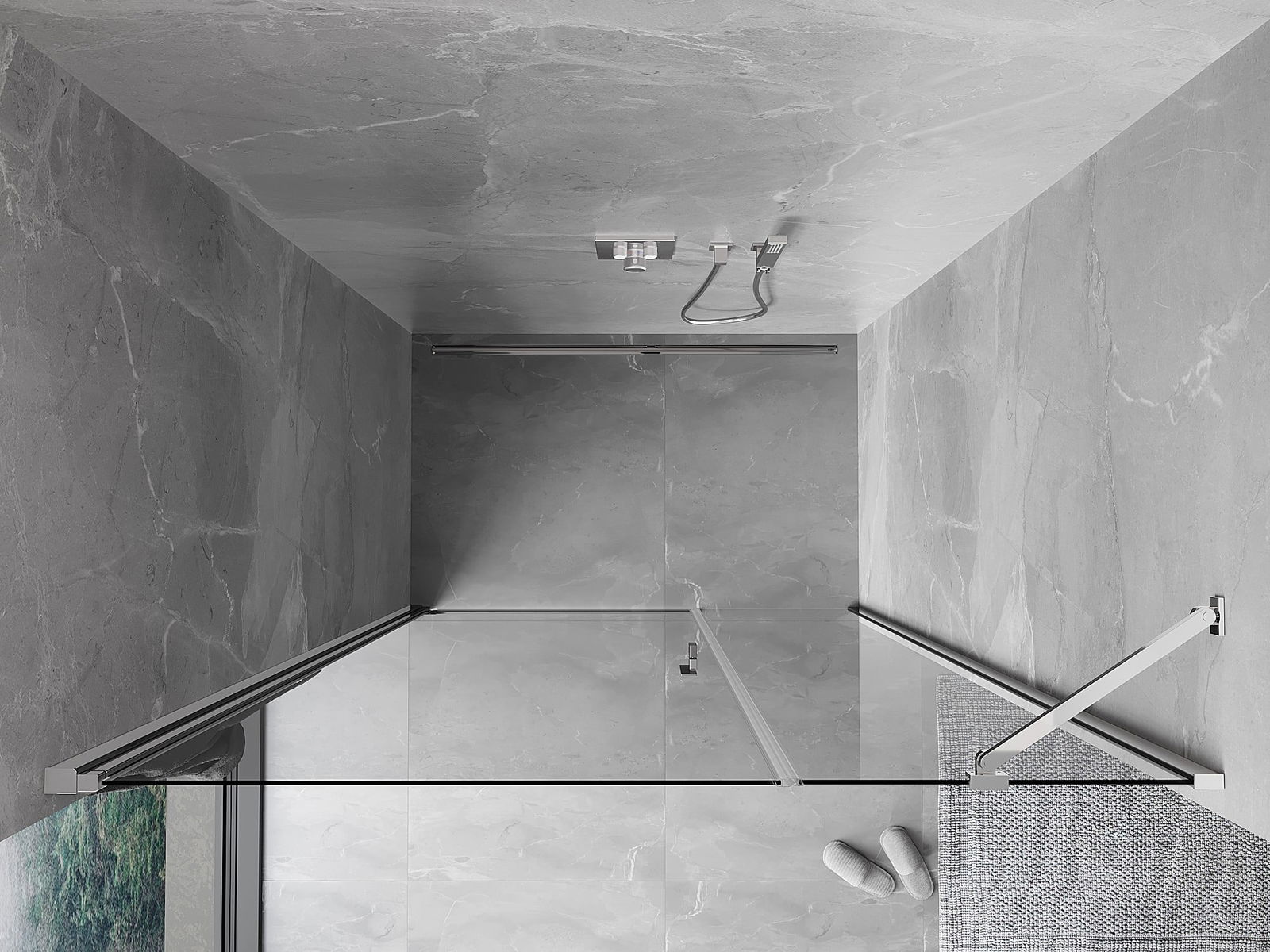 La poignée pratique et confortable est fabriquée en métal durable et résistant. Sa forme à la mode, combinée à une finition assortie à la couleur des profilés, donne à l'ensemble un aspect moderne et stylé, soulignant l'esthétique de chaque salle de bain.