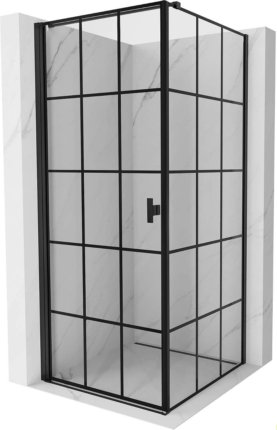 Mexen Mist-B cabine de douche pivotante gauche 90 x 90 cm, grille noire, noire - 8A2T-090-090-70-77-L
