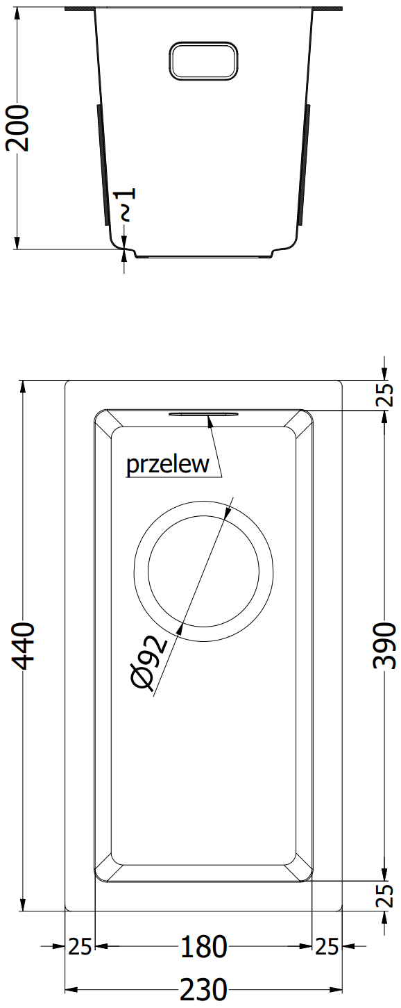 Profondeur du bac : 200 mm