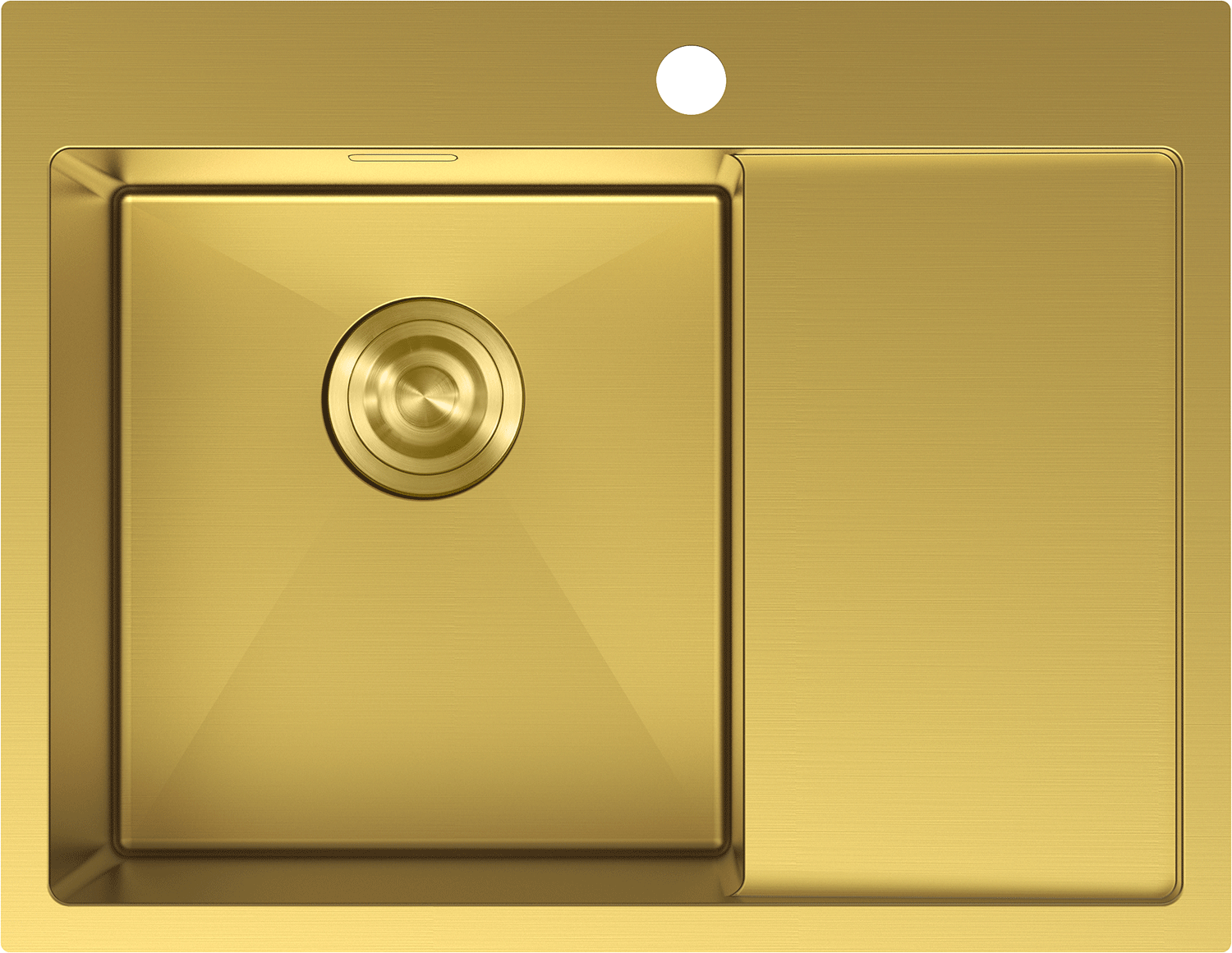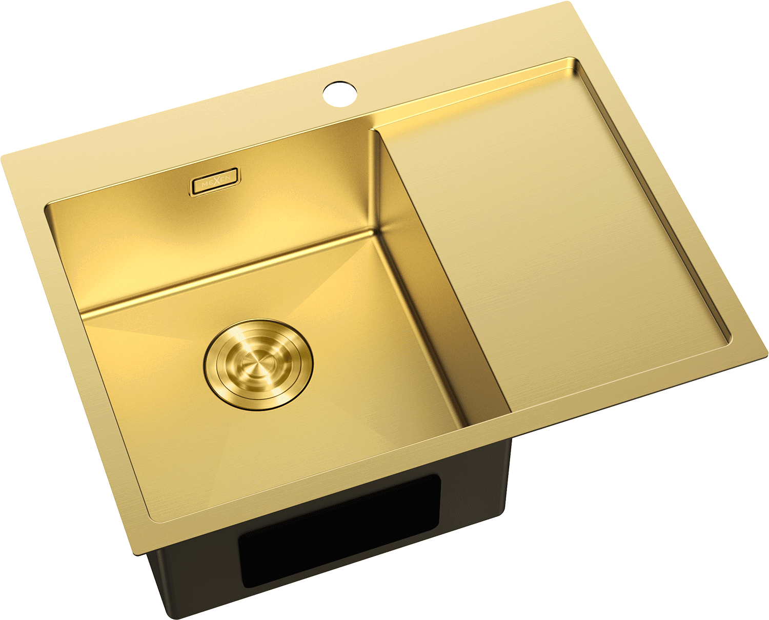 Mexen Exar Évier en acier inoxydable à 1 bac avec égouttoir, gauche 620 x 480 mm, doré - 6431621005L-55