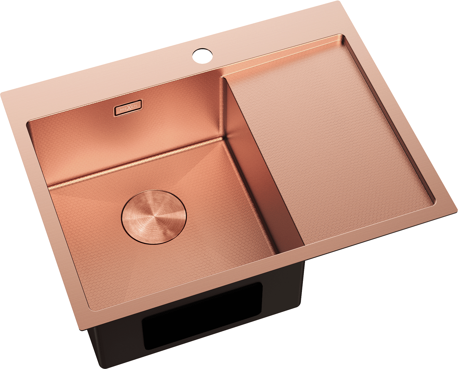 Mexen Exar évier en acier inoxydable 1 bac avec égouttoir, gauche 620 x 480 mm, cuivre HC - 6431621005L-65HC