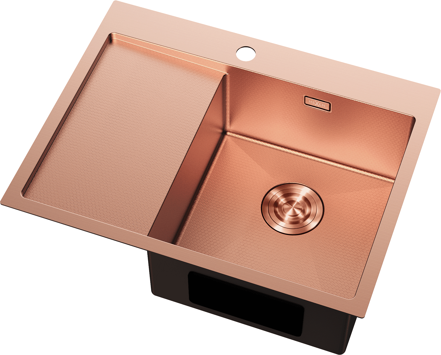 Mexen Exar évier en acier inoxydable à 1 bac avec égouttoir droit 620 x 480 mm, cuivre HC - 6432621005P-65HC