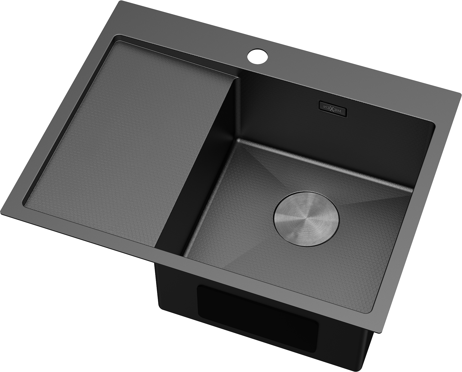 Mexen Exar Évier en acier inoxydable 1 bac avec égouttoir, côté droit 620 x 480 mm, noir HC - 6432621005P-70HC