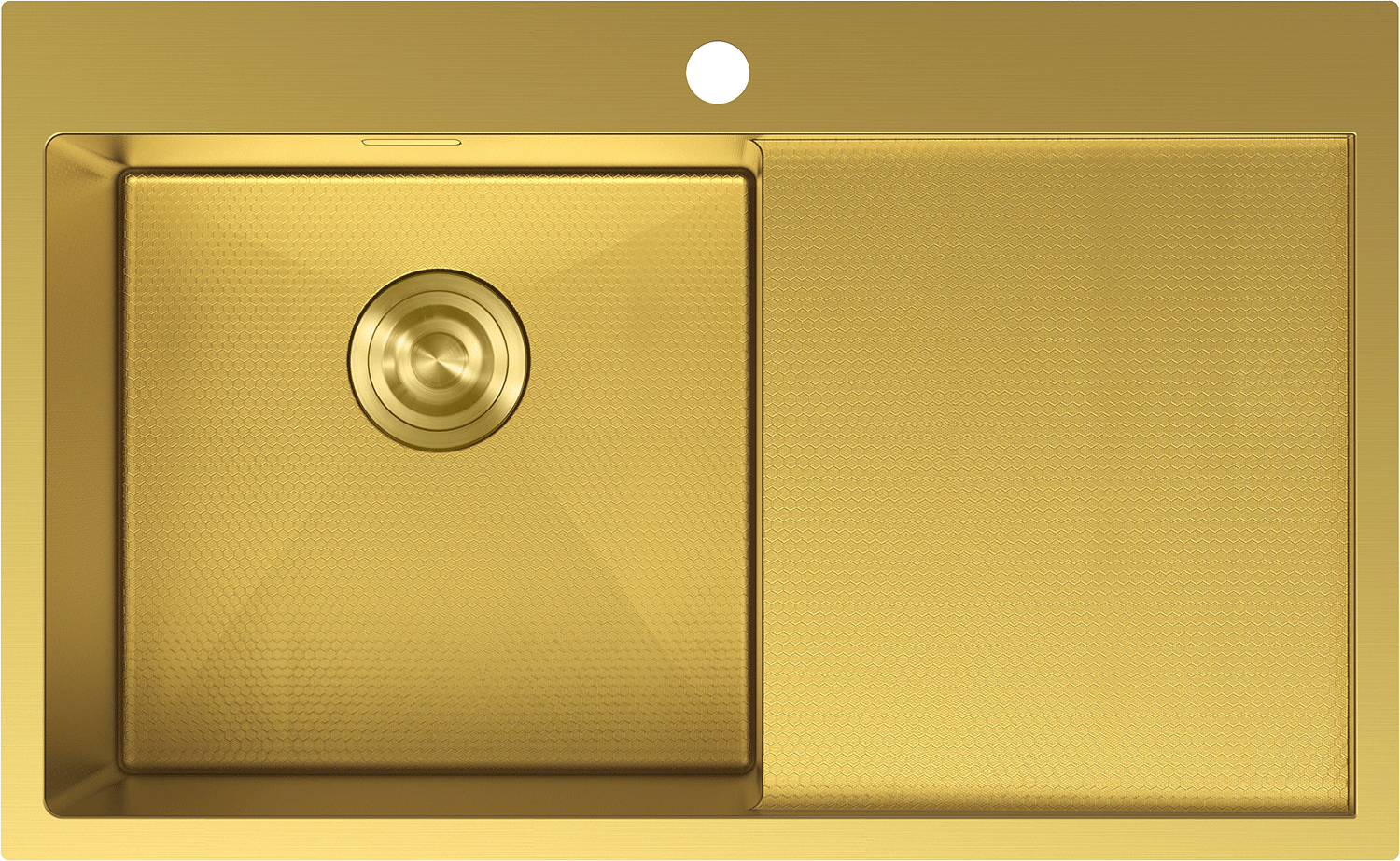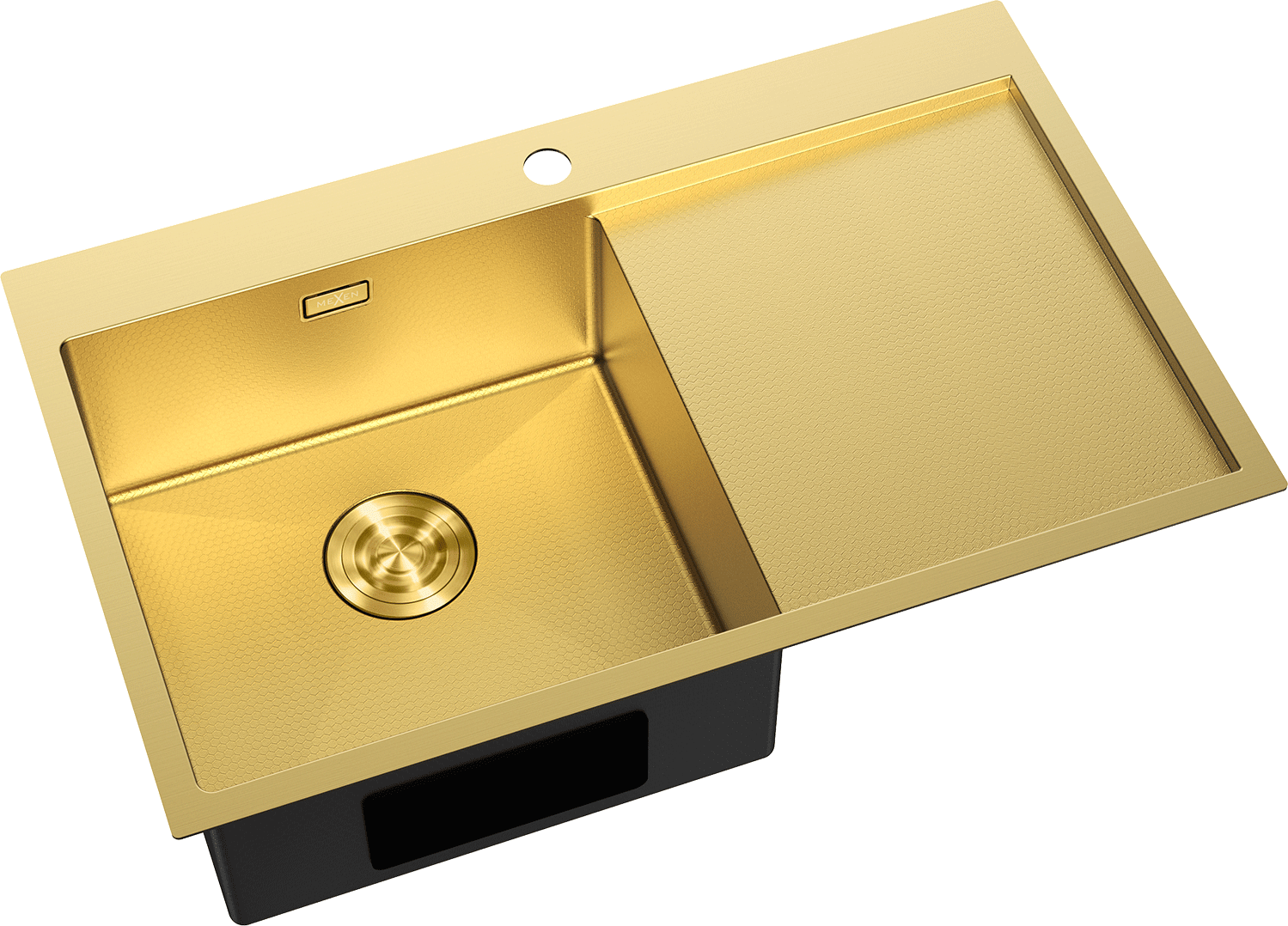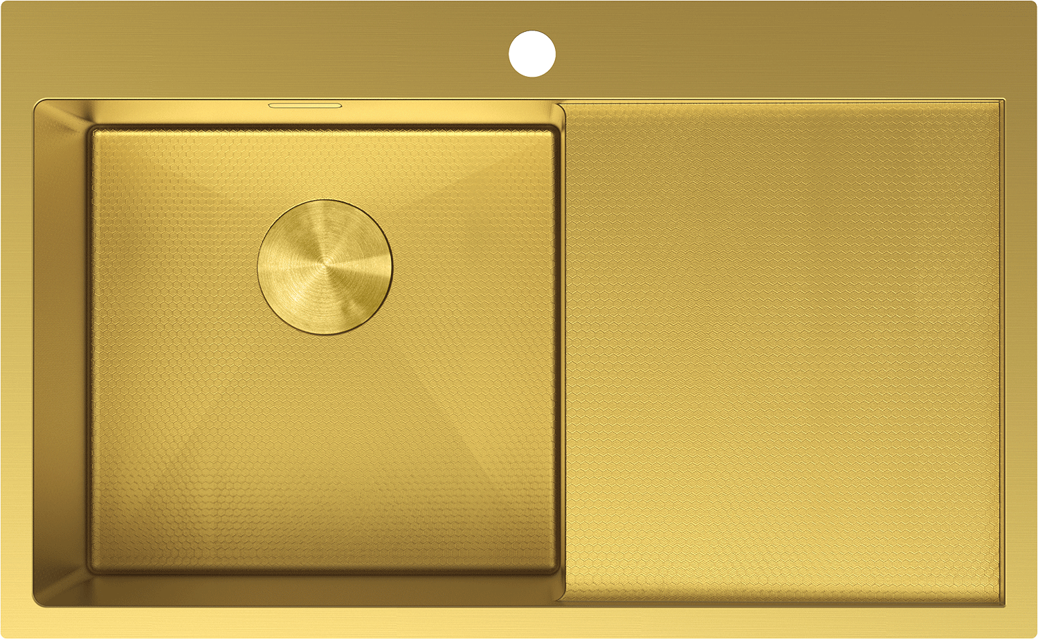 Mexen Exar évier en acier inoxydable 1 bac avec égouttoir, à gauche 780 x 480 mm, doré HC - 6433781010L-55HC