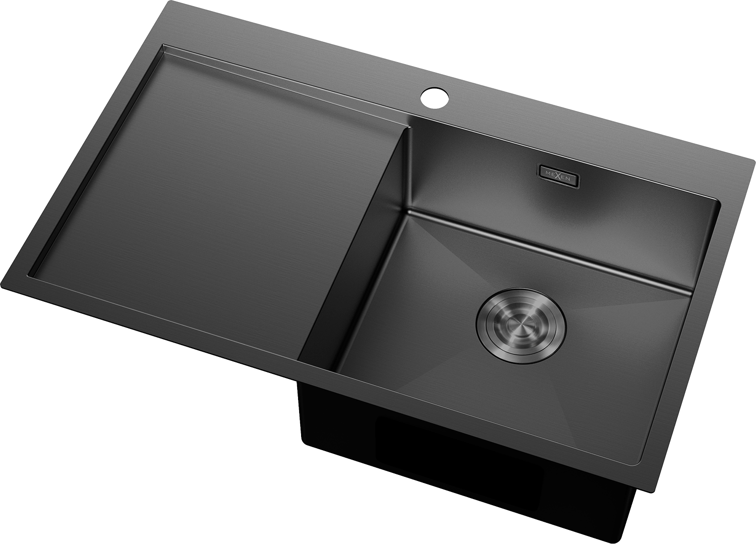 Mexen Exar évier en acier inoxydable 1 bac avec égouttoir droit 780 x 480 mm, noir - 6434781010P-70