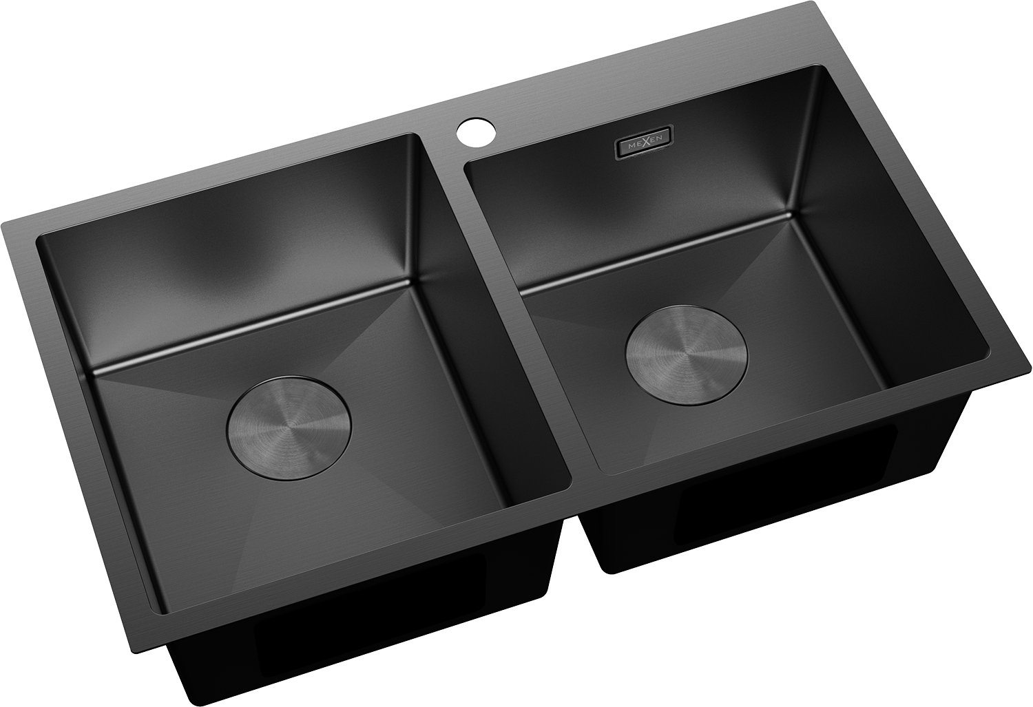 Mexen Xorin évier en acier inoxydable à 2 bacs 780 x 450 mm, noir - 6441782000-70