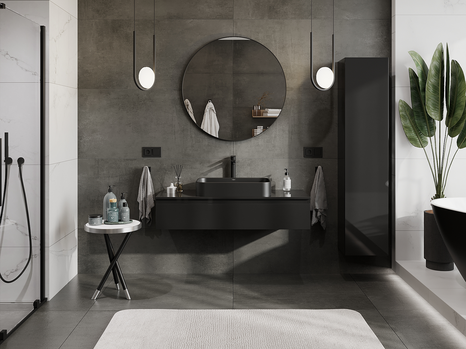 Mexen Orio meuble de salle de bains sous lavabo 120 cm, 1 tiroir, noir brillant - 91A10-12023-1-BF70