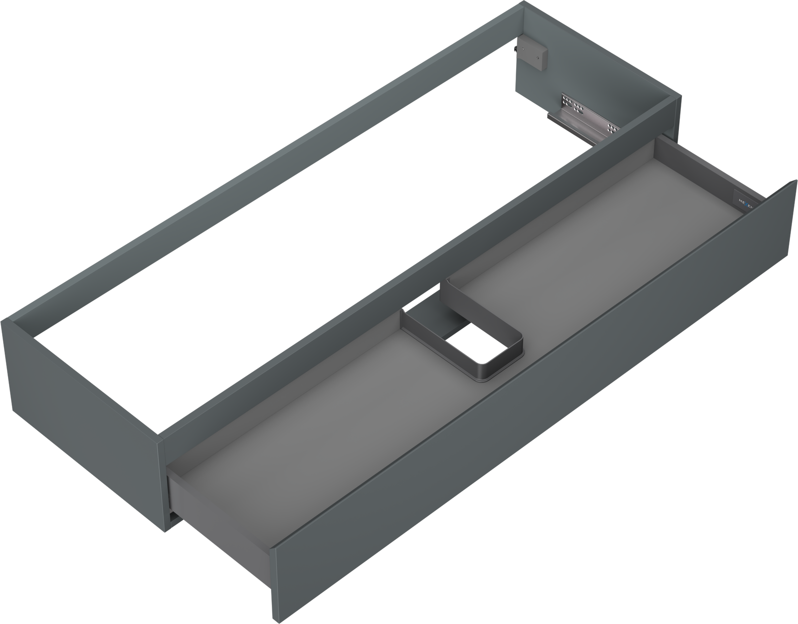 La découpe dans le tiroir est conçue de manière à accueillir le siphon, qui est nécessaire dans les installations de lavabo. Ainsi, le meuble peut être installé de manière pleinement fonctionnelle, sans devoir renoncer à l'espace du tiroir au profit de l'installation.