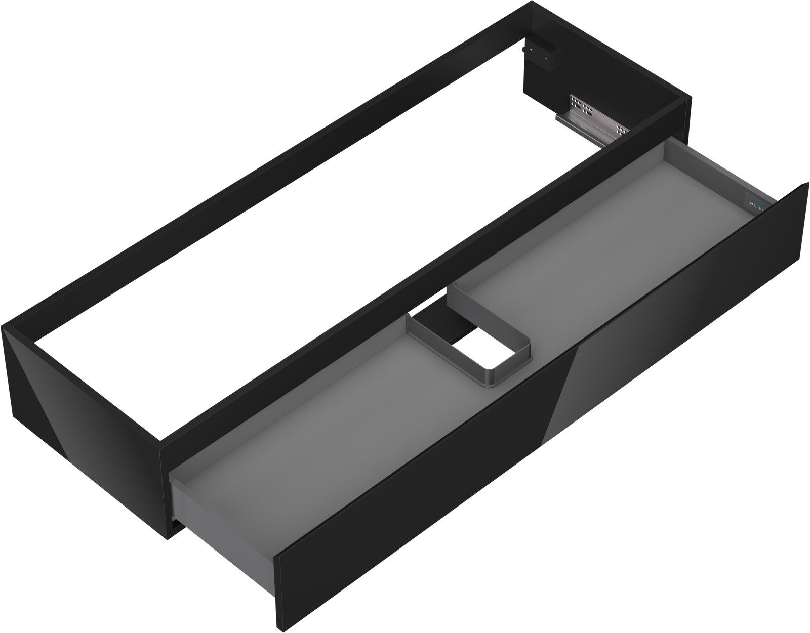 La découpe dans le tiroir est conçue de manière à accueillir le siphon, qui est nécessaire dans les installations de lavabo. Ainsi, le meuble peut être installé de manière pleinement fonctionnelle, sans devoir renoncer à l'espace du tiroir au profit de l'installation.