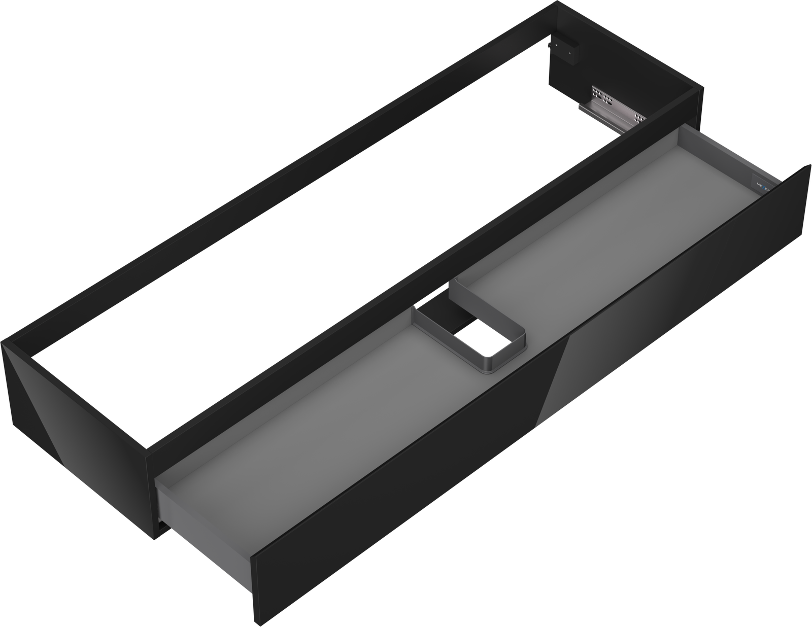 La découpe dans le tiroir est conçue de manière à accueillir le siphon, qui est nécessaire dans les installations de lavabo. Ainsi, le meuble peut être installé de manière pleinement fonctionnelle, sans devoir renoncer à l'espace du tiroir au profit de l'installation.