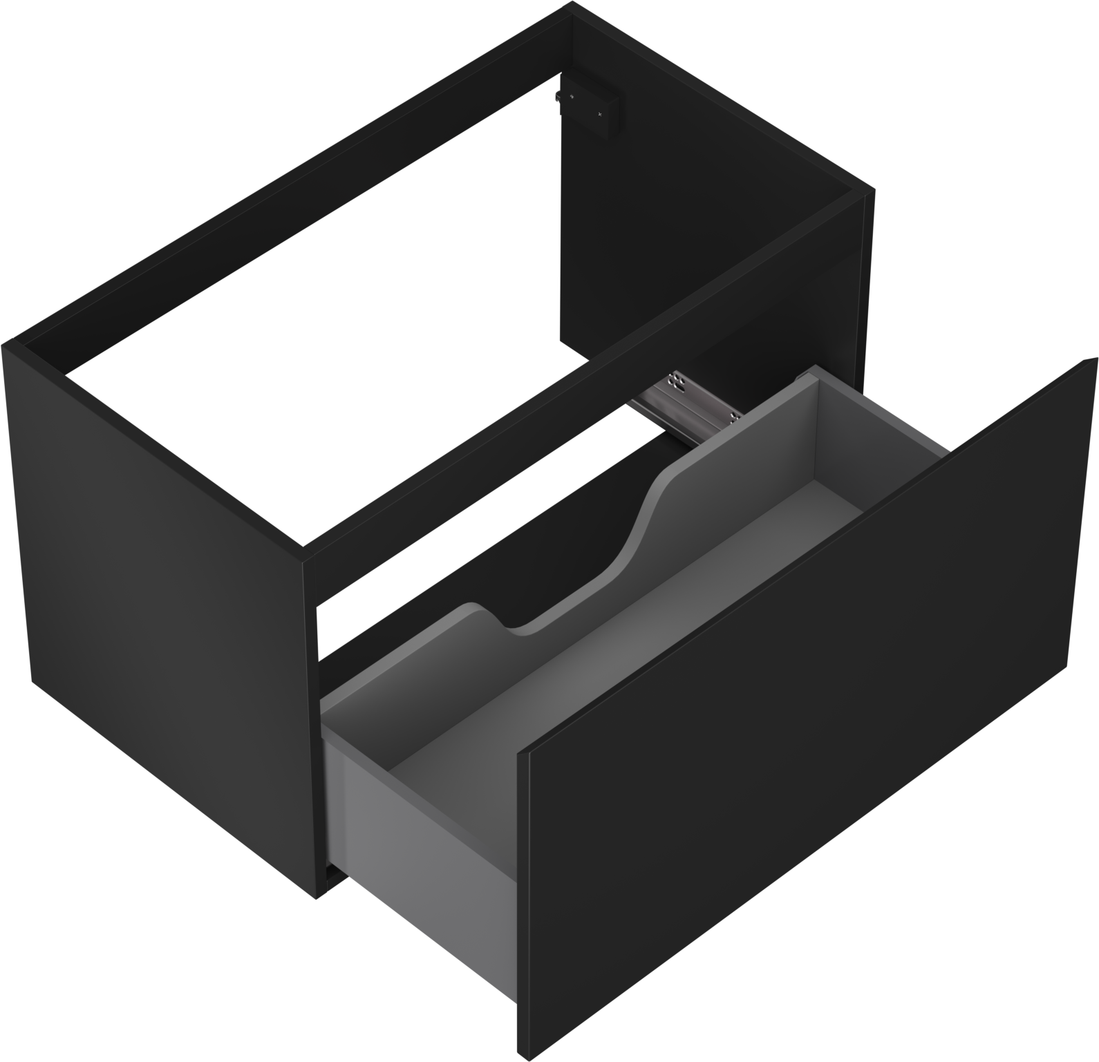 La découpe dans le tiroir est conçue de manière à accueillir le siphon, qui est nécessaire dans les installations de lavabo. Ainsi, le meuble peut être installé de manière pleinement fonctionnelle, sans devoir renoncer à l'espace du tiroir au profit de l'installation.