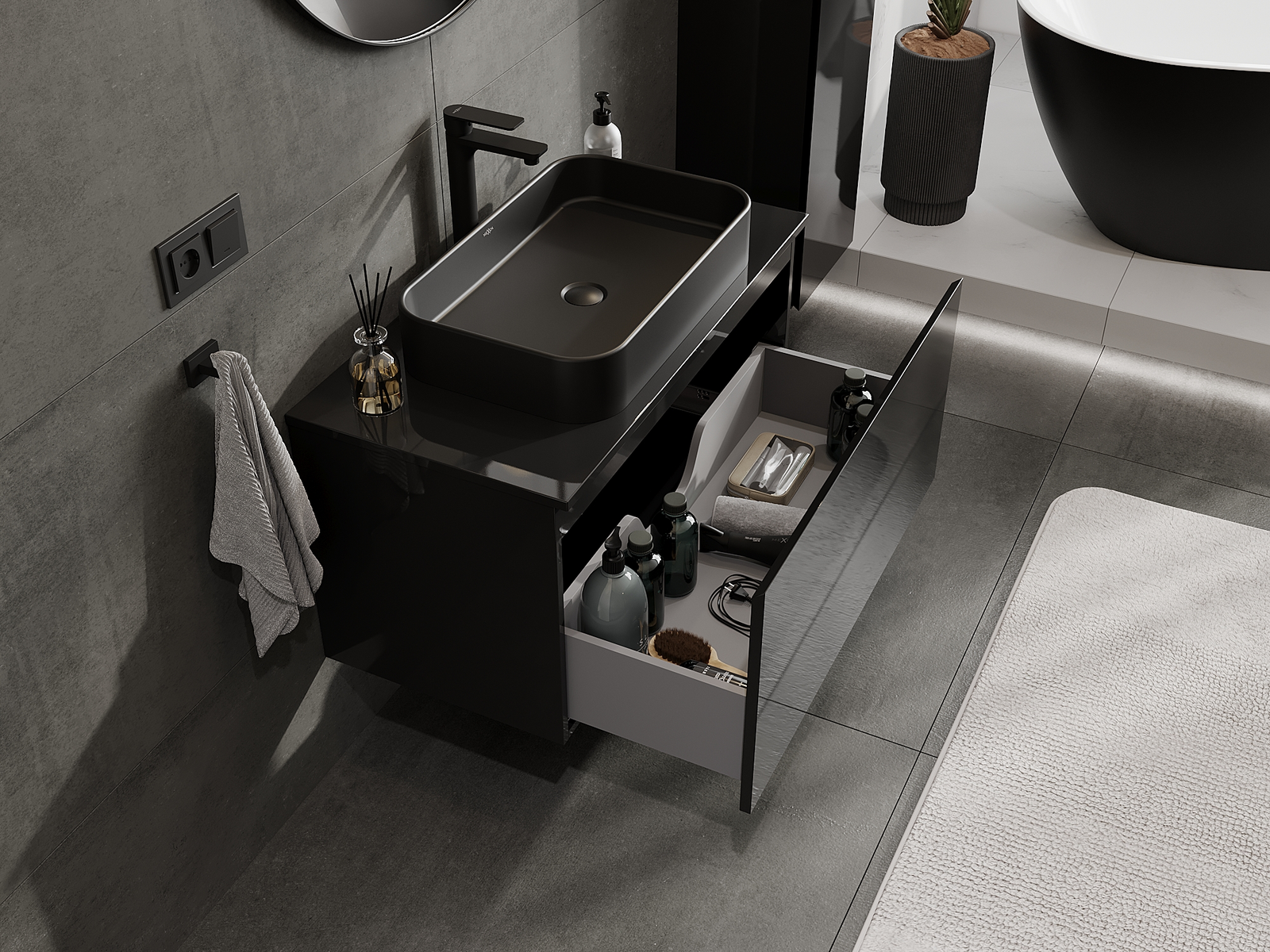 Mexen Orio meuble de salle de bain sous lavabo 90 cm, 1 tiroir, noir brillant - 91A10-09047-1-BF70