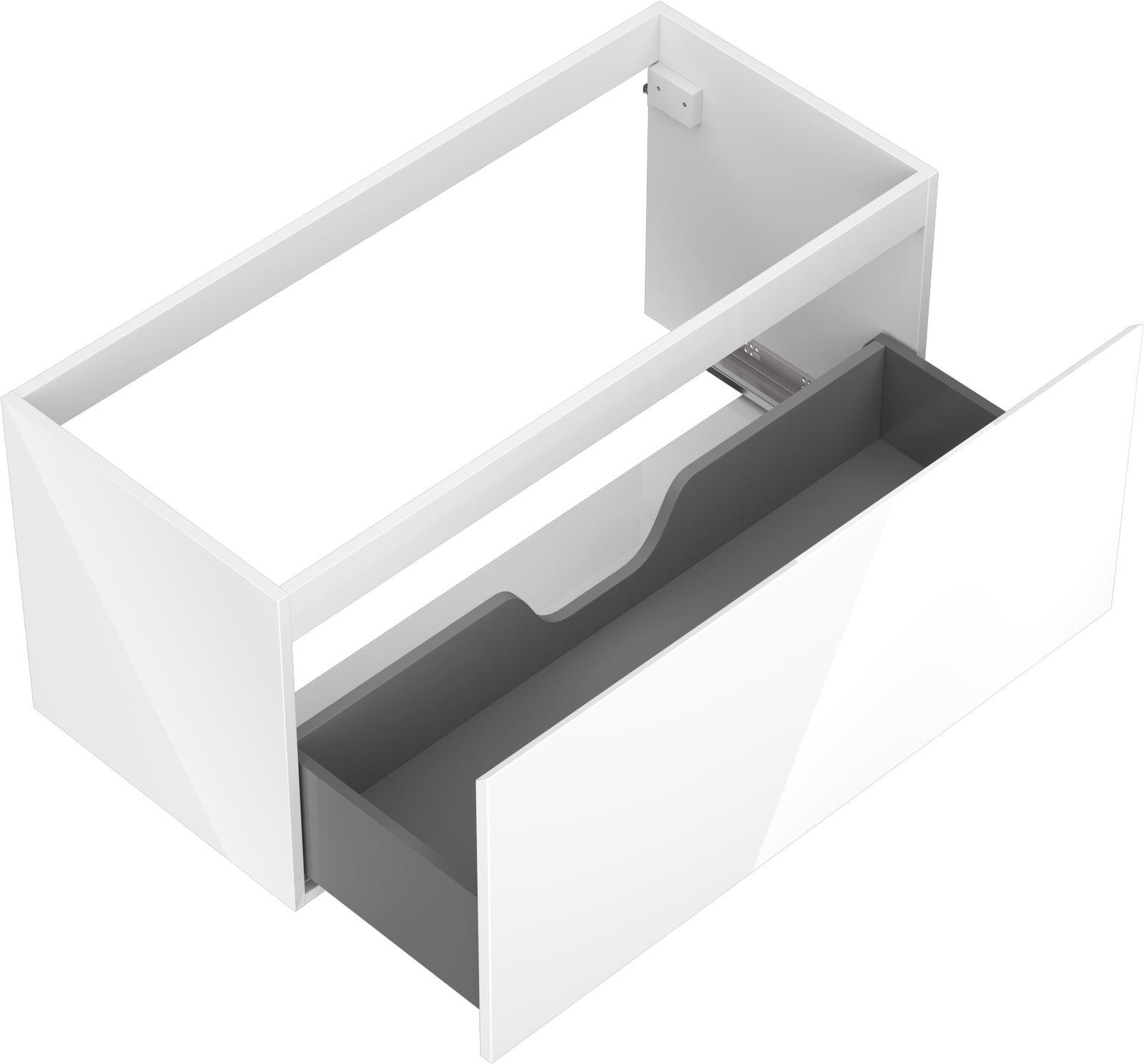 La découpe dans le tiroir est conçue de manière à accueillir le siphon, qui est nécessaire dans les installations de lavabo. Ainsi, le meuble peut être installé de manière pleinement fonctionnelle, sans devoir renoncer à l'espace du tiroir au profit de l'installation.