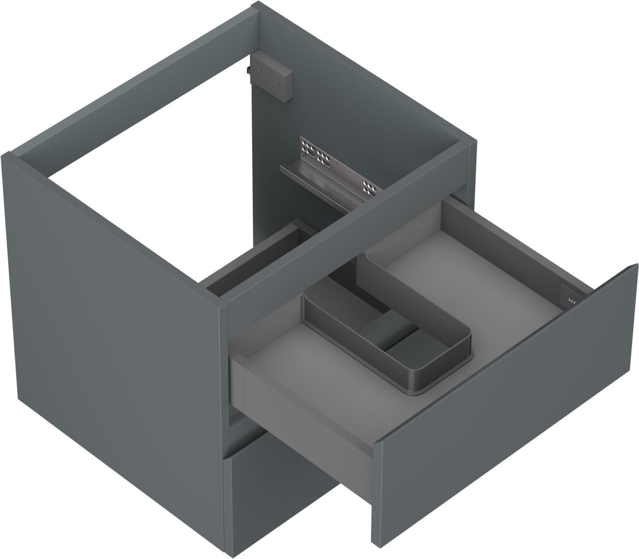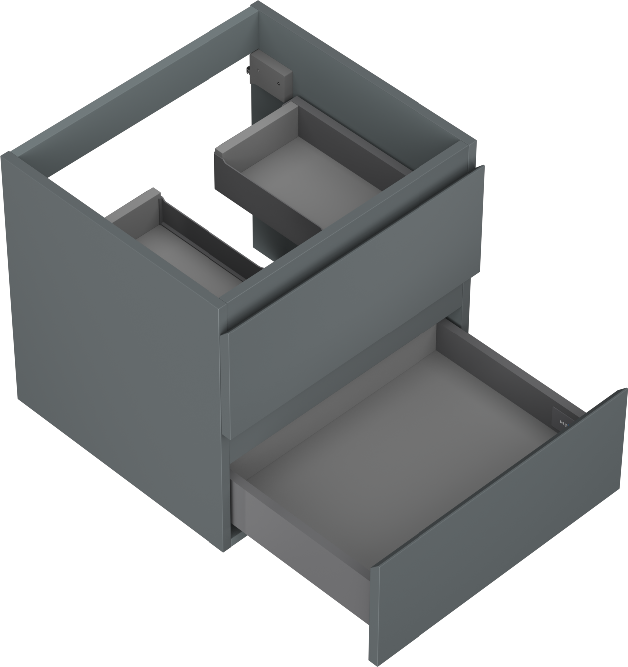 La découpe dans le tiroir est conçue de manière à accueillir le siphon, qui est nécessaire dans les installations de lavabo. Ainsi, le meuble peut être installé de manière pleinement fonctionnelle, sans devoir renoncer à l'espace du tiroir au profit de l'installation.
