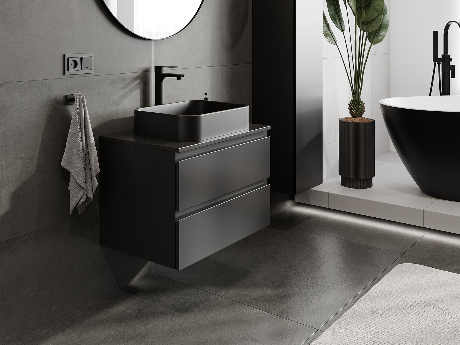 Mexen Orio meuble de salle de bain sous-lavabo 70 cm, 2 tiroirs, noir mat - 91A10-07047-2-BFF71