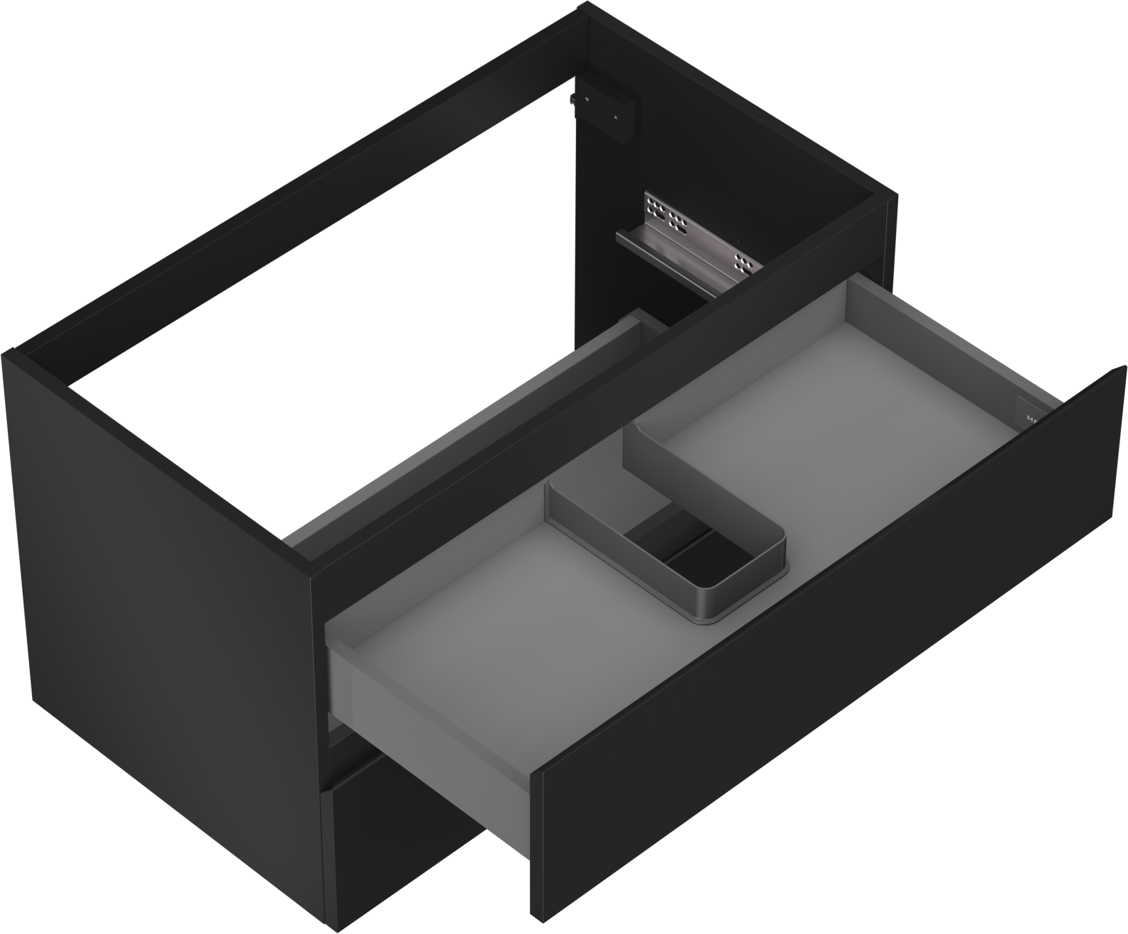 La découpe dans le tiroir est conçue de manière à accueillir le siphon, qui est nécessaire dans les installations de lavabo. Ainsi, le meuble peut être installé de manière pleinement fonctionnelle, sans devoir renoncer à l'espace du tiroir au profit de l'installation.