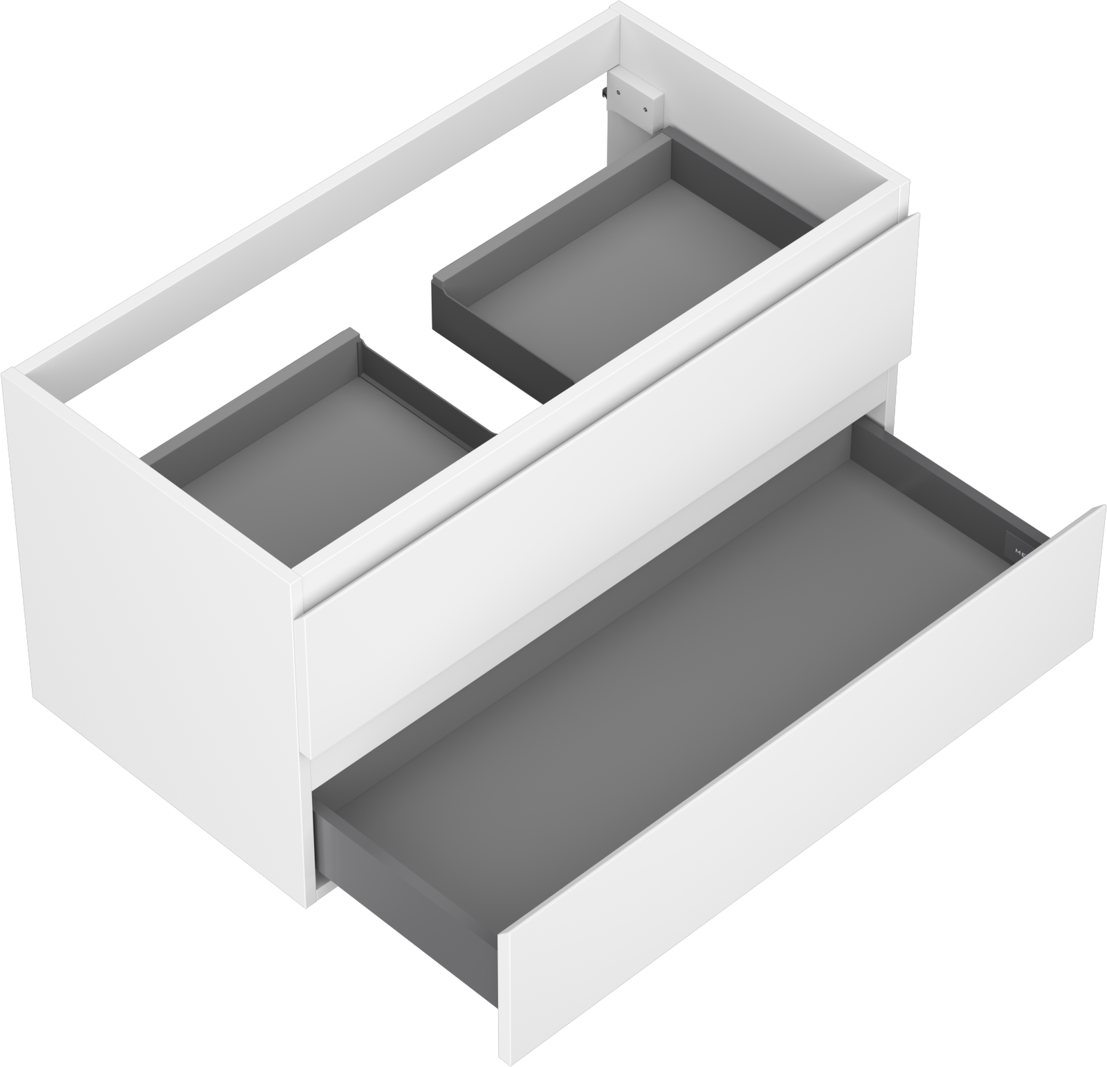 La découpe dans le tiroir est conçue de manière à accueillir le siphon, qui est nécessaire dans les installations de lavabo. Ainsi, le meuble peut être installé de manière pleinement fonctionnelle, sans devoir renoncer à l'espace du tiroir au profit de l'installation.