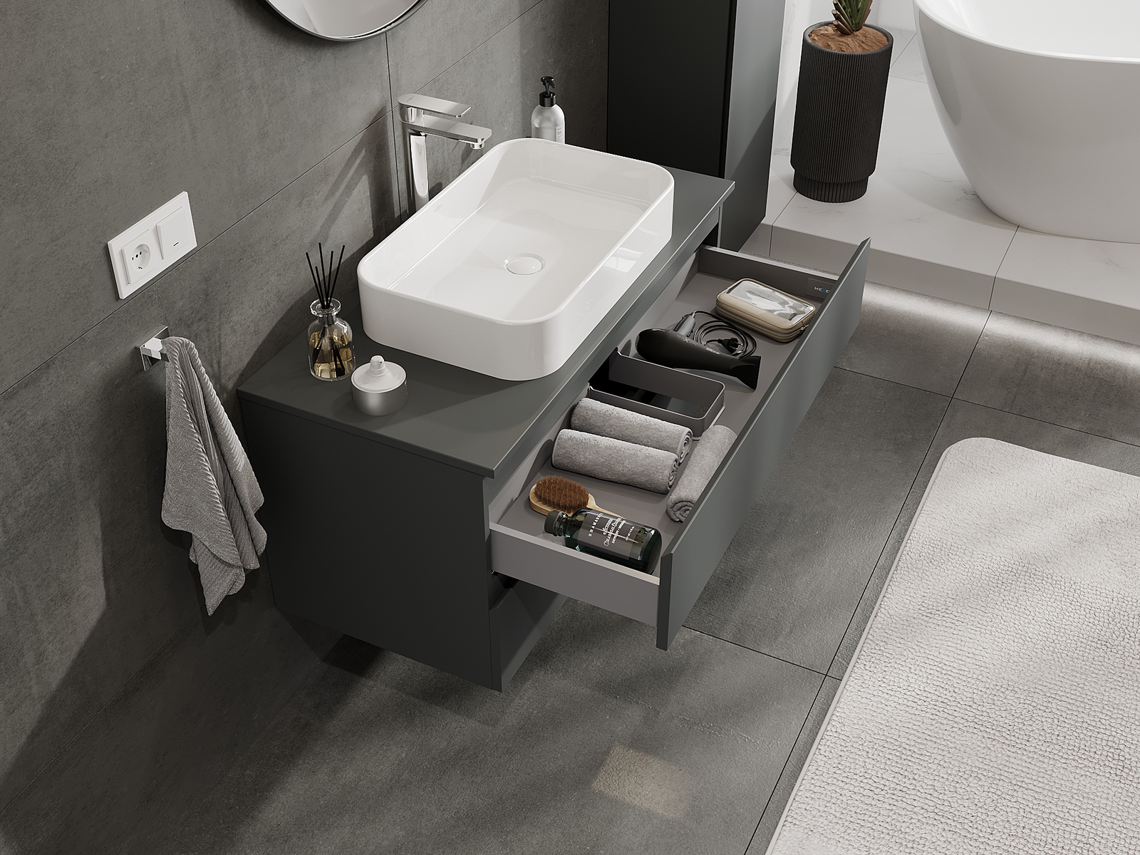 Mexen Orio meuble de salle de bain pour lavabo 100 cm, 2 tiroirs, graphite mat - 91A10-10047-2-BFF66