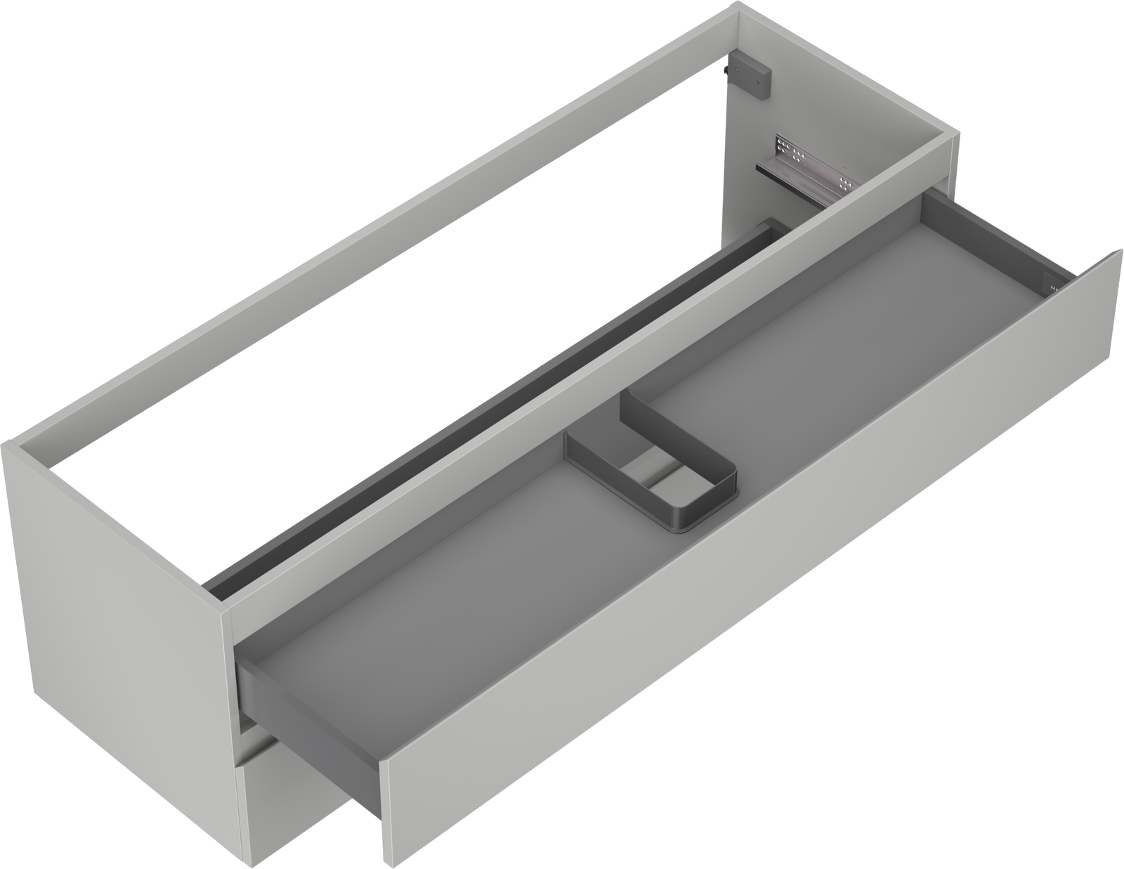 La découpe dans le tiroir est conçue de manière à accueillir le siphon, qui est nécessaire dans les installations de lavabo. Ainsi, le meuble peut être installé de manière pleinement fonctionnelle, sans devoir renoncer à l'espace du tiroir au profit de l'installation.